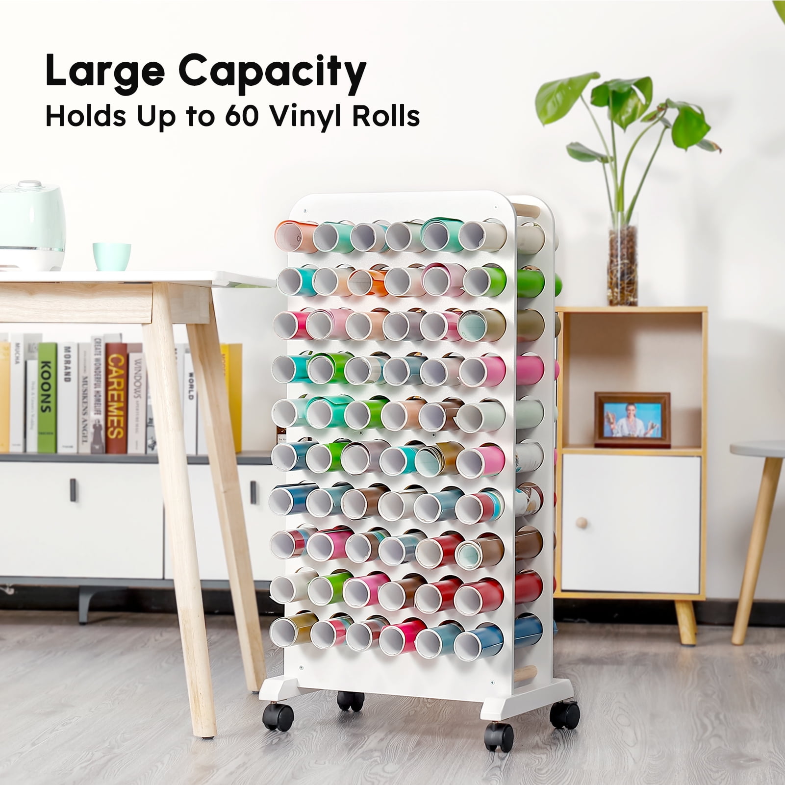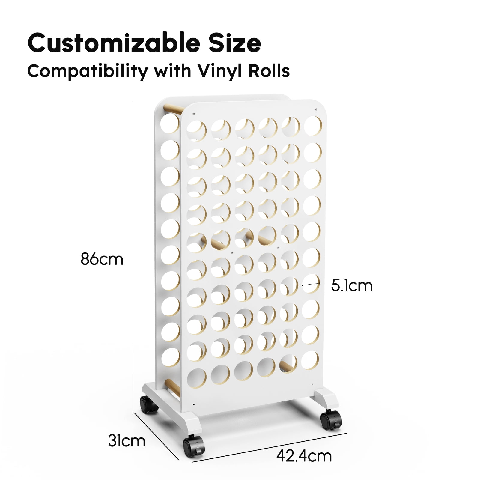Crafit Mobile Vinyl Roll Holder 60 Compartment Wooden Vinyl Storage with Wheels for Craft Room Home