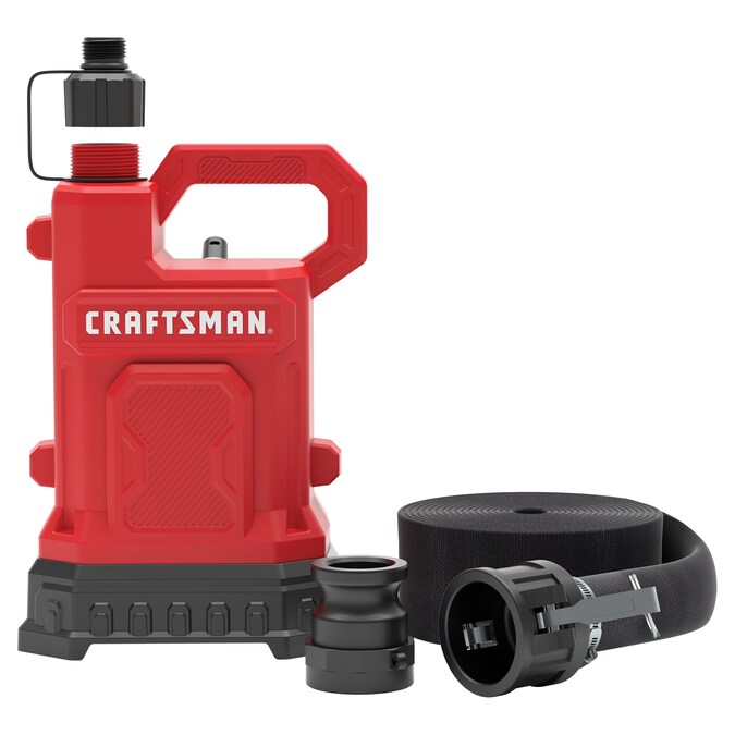 CRAFTSMAN Submersible Water/Utility Pumps are built with top level quality and the pride you expect with the long standing reputation of CRAFTSMAN. The CRAFTSMAN 1/2 HP Submersible Water Pump with hose kit provides high-performance, pumping water up to 3000 GPH and up to 33 vertical feet. The versatile line of CRAFTSMAN Submersible Water Pumps have many applications including draining pools & hot tubs, flooded areas, and other water removal needs. The 25 foot hose kit included connects and disconnects quickly using cam locks and is compact for storage and transport. Engineered with long lasting copper winded motors, a 15 foot power cord, 1-1/2″ FTP discharge and 3/4″ garden hose adapter, CRAFTSMAN Submersible Water/Utility Pumps are designed to last and are backed by a 3-Year Warranty