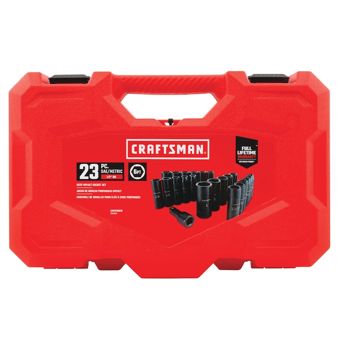 CRAFTSMAN 23-Piece Standard (SAE) and Metric Combination 1/2-in Drive Set 6-Point Impact Socket Set