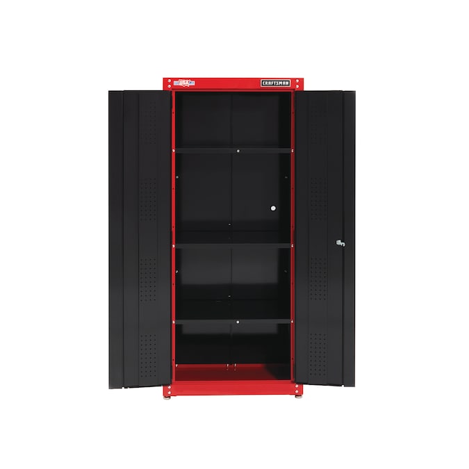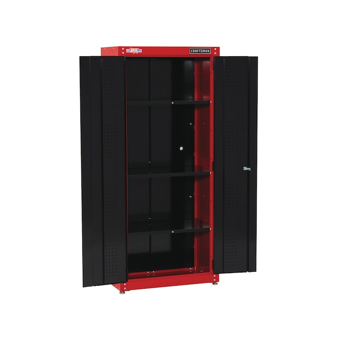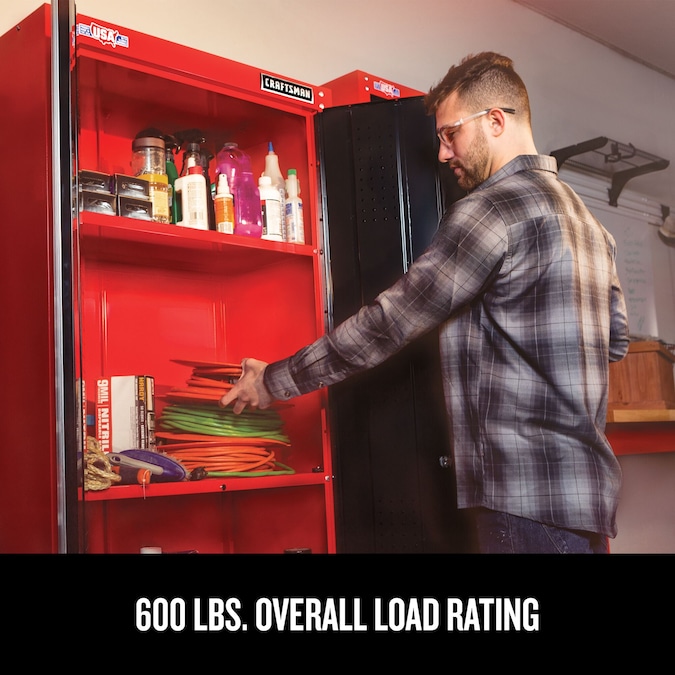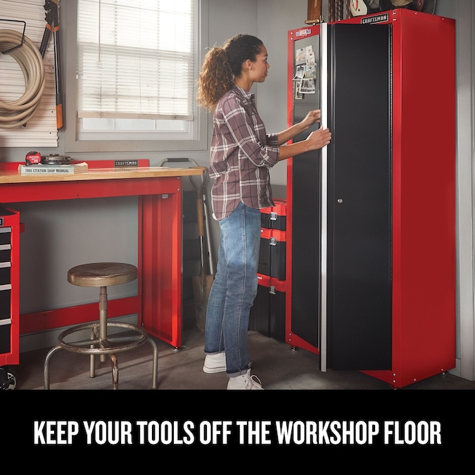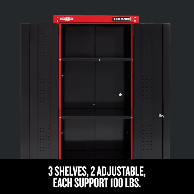 Proudly Made in the USA with Global Materials in Sedalia, Missouri. The 32-in Wide Freestanding Tall Garage Storage Cabinet is the best place to start when organizing your garage. Keep your tools off the workshop floor while being organized and ready for the next project to come. Includes (1) Storage Cabinet and (1) Set of keys. Backed by CRAFTSMAN 10-Year Limited Warranty.
