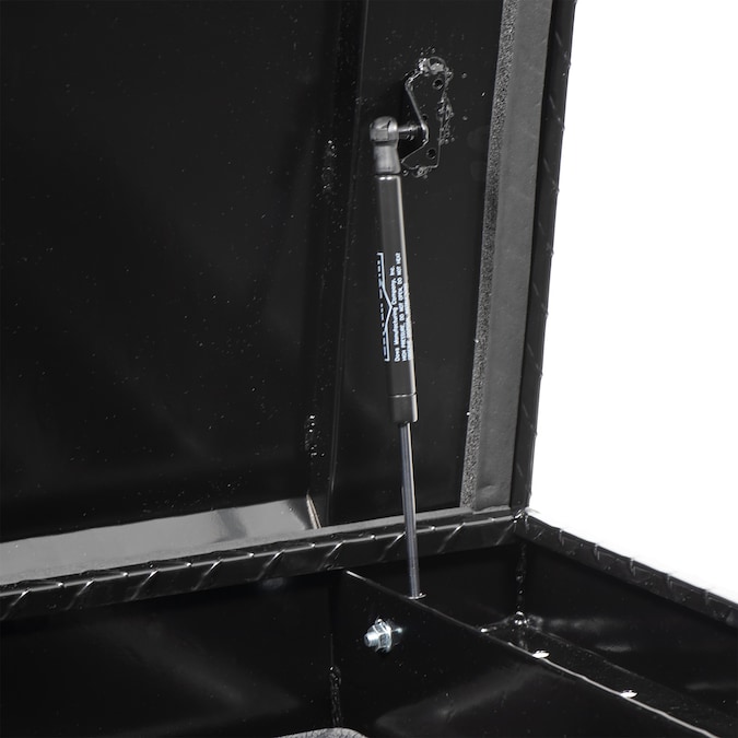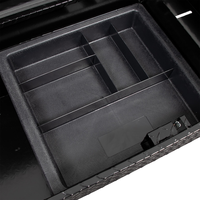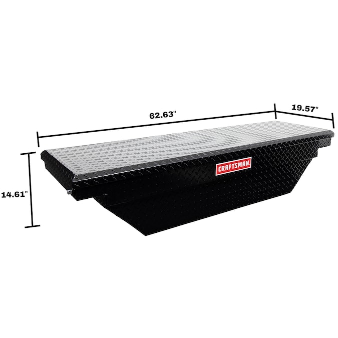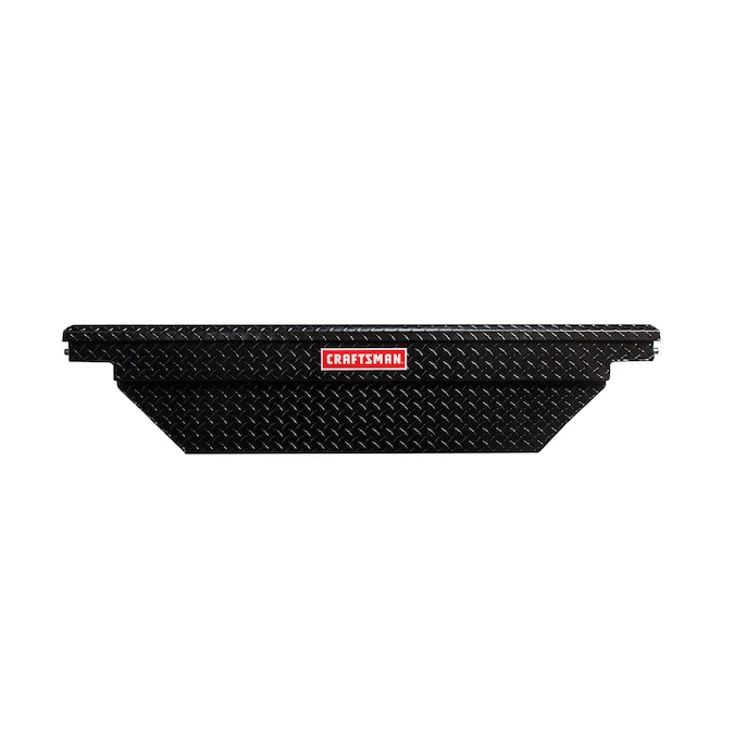 The Craftsman 62 inch Black Aluminum Mid-Size Low Profile Crossover Truck Tool Box conveniently mounts on most mid-size pickup truck bed rails, directly behind the cab. The box is constructed of heavy-duty 17 gauge aluminum, with a durable and abrasion-resistant Black powder-coat finish inside and out. The lockable and convenient push button handles provide easy access and extra security for your belongings. The fully-welded aluminum construction and foam weather stripping protect your items from dirt and inclement weather.