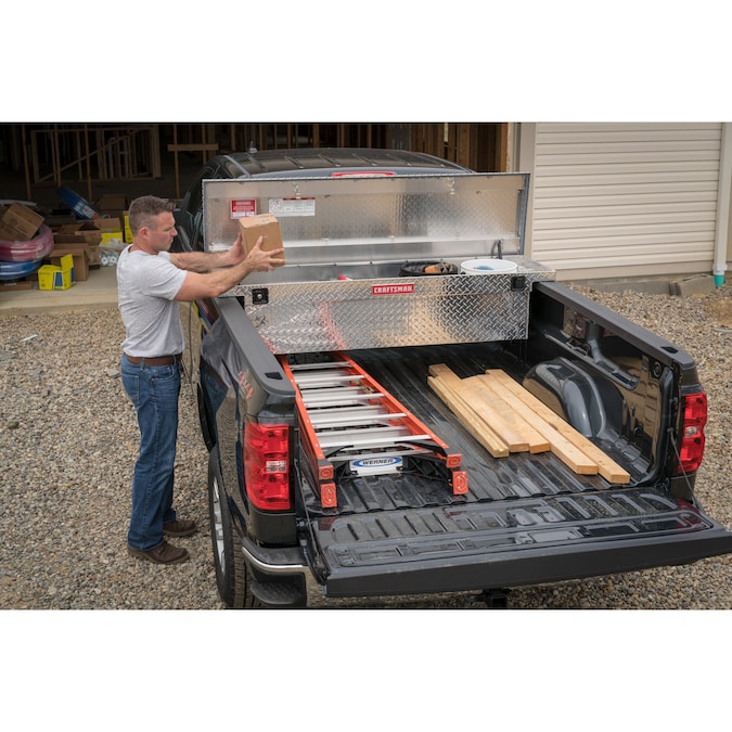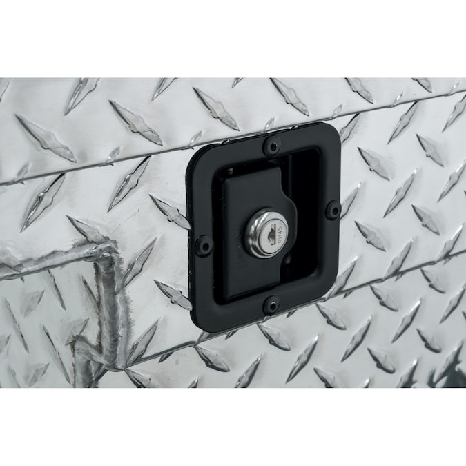 The Craftsman 71 inch Brite Aluminum Low Profile Crossover Truck Tool Box conveniently mounts on most full-size pickup truck bed rails, directly behind the cab. The box is constructed of heavy-duty 17 gauge aluminum. The lockable and easy to use paddle handles provide easy access and extra security for your belongings. The fully-welded aluminum construction and rubber weather seal protect your items from dirt and inclement weather.