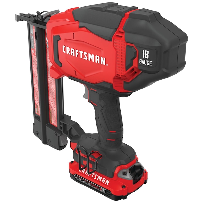 V20 18 Ga Cordless Finish Nailer Kit (1 Battery) is design to eliminate the need for compressors, hoses, or costly gas cartridges. The powerful motor delivers consistent firing power in various weather conditions and materials while the single tool-free depth setting allows you to adjust the nail depth quickly. A contoured over-molded handle and lightweight design helps minimize user fatigue during prolonged usage.