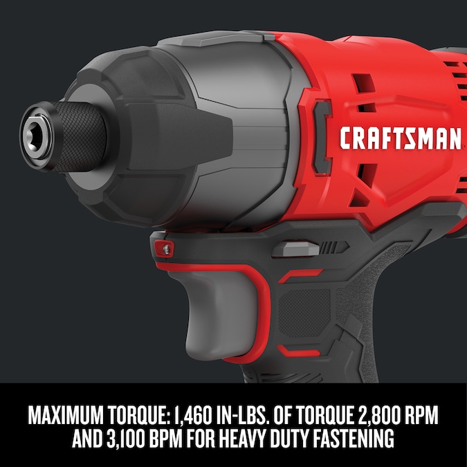 - CMCF800 V20 Cordless 1/4-in Impact Driver: MAXIMUM TORQUE: Provides 1,460 in-lbs of torque 2,800 RPM and 3,100 BPM for heavy duty fastening