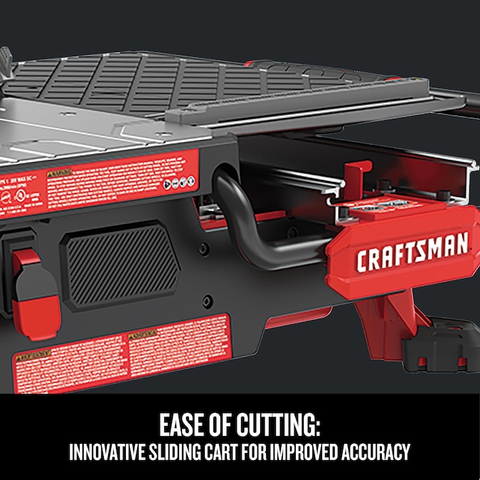 - Includes: (1) Tile Saw; (1) CMCB204 V20* 4.0Ah Lithium Ion Battery; (1) CMCB104 V20* 4.0Ah Battery Charger; (1) Blade Wrench; (1) 7-in Diamond Blade; (1) Miter Square