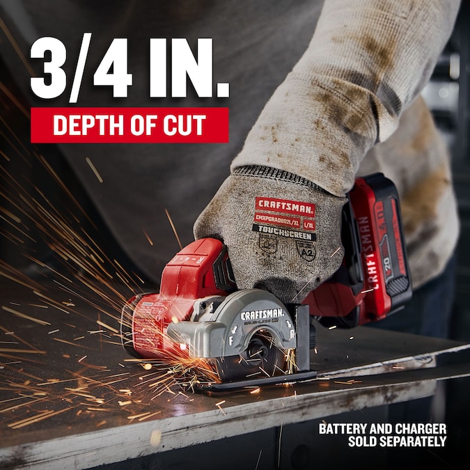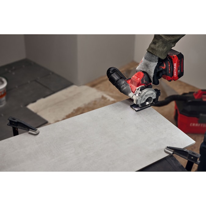 The CRAFTSMAN® V20* Brushless RP™ 3 in. Cut-Off Tool features a powerful brushless motor to deliver More Runtime and Better Performance**. This tool allows a ¾” depth of cut, and provides versatility with its adjustable shoe. The addition of an LED light and dust port adapter can help keep a bright and clean workspace during projects. The CMCM300B comes with 3 different cutoff wheels to give you the ability to cut multiple materials including tile, metal, and more. When the job is done, easily store the Cut-Off Tool alongside the rest of your CRAFTSMAN® collection on the VERSATRACK™ wall storage system (sold separately).