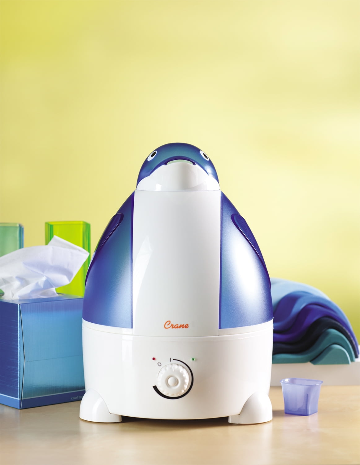 VARIABLE SPEED SETTINGS: The Crane Adorable Cool Mist Humidifiers offer variable output settings and an adjustable 360° mist lid. The mist output is perfect for humidifying rooms up to 500 sq. ft. WHISPER QUIET: Crane’s Adorables humidifiers runs whisper quiet which makes it the perfect bedroom humidifier option for light sleepers, kids, and especially babies ONE GALLON TANK: Our humidifiers have a 1 gallon tank and are filter free, but we offer an optional demineralization filter (HS-1932) for those with excessive minerals in their water 24 HOUR RUN TIME: The penguin humidifier runs up to 24 hours. It also is equipped with an automatic shut-off safety feature that turns the unit off when the water runs out EASY TO CLEAN: Crane’s easy to clean humidifier design features a detachable bottom fill tank, removable water level sensor and cap 1-year limited manufacturer warranty included.