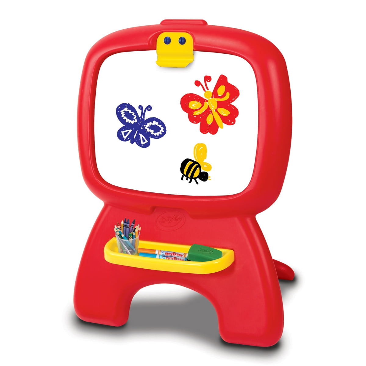 Crayola My First Draw N Dabble Chalkboard Easel: Grow’n Up My First Draw n Dabble Easel Made from durable plastic material Bright red and yellow colors Large paper clip holds sheet in place Easy clean drawing surface Recommended for kids 3 and up