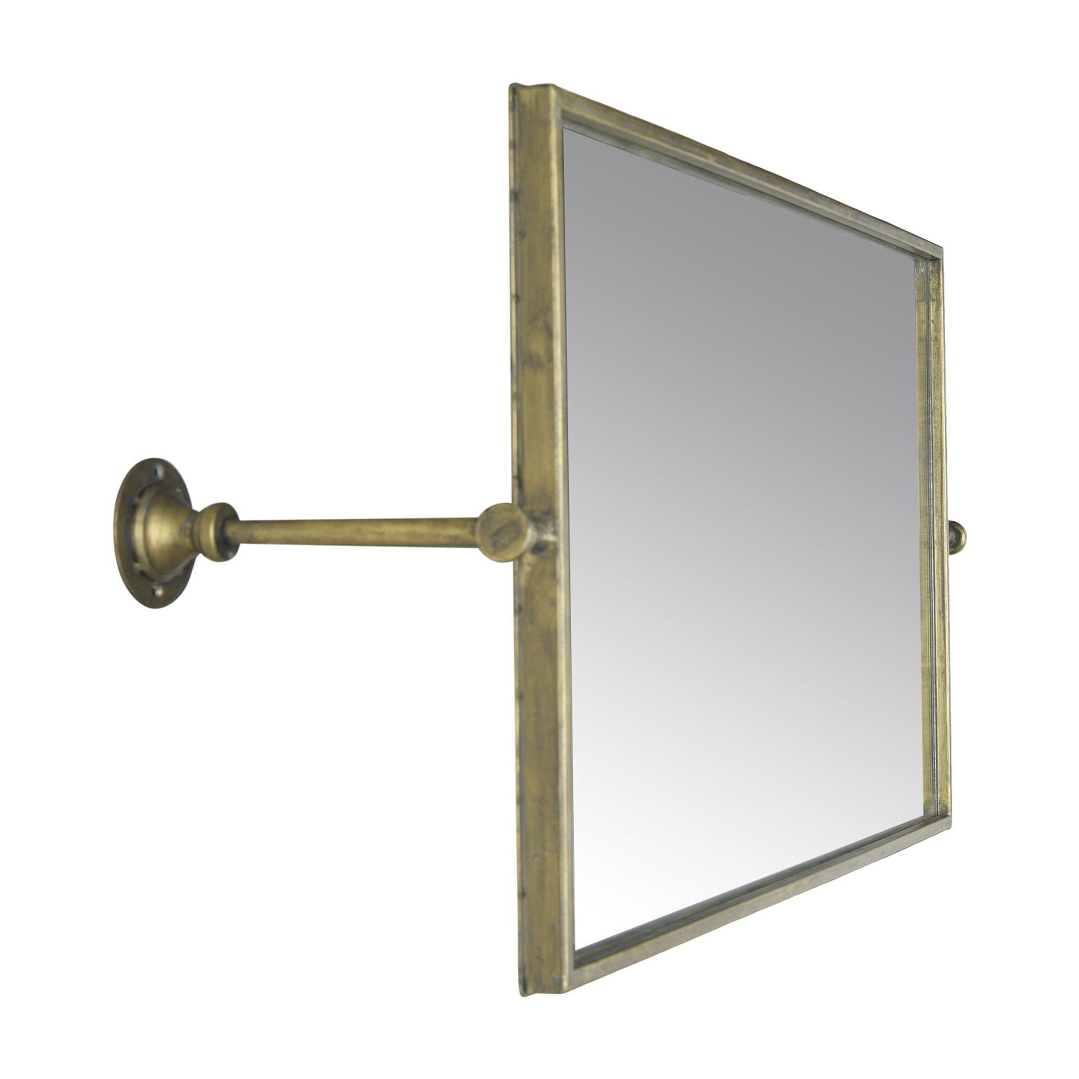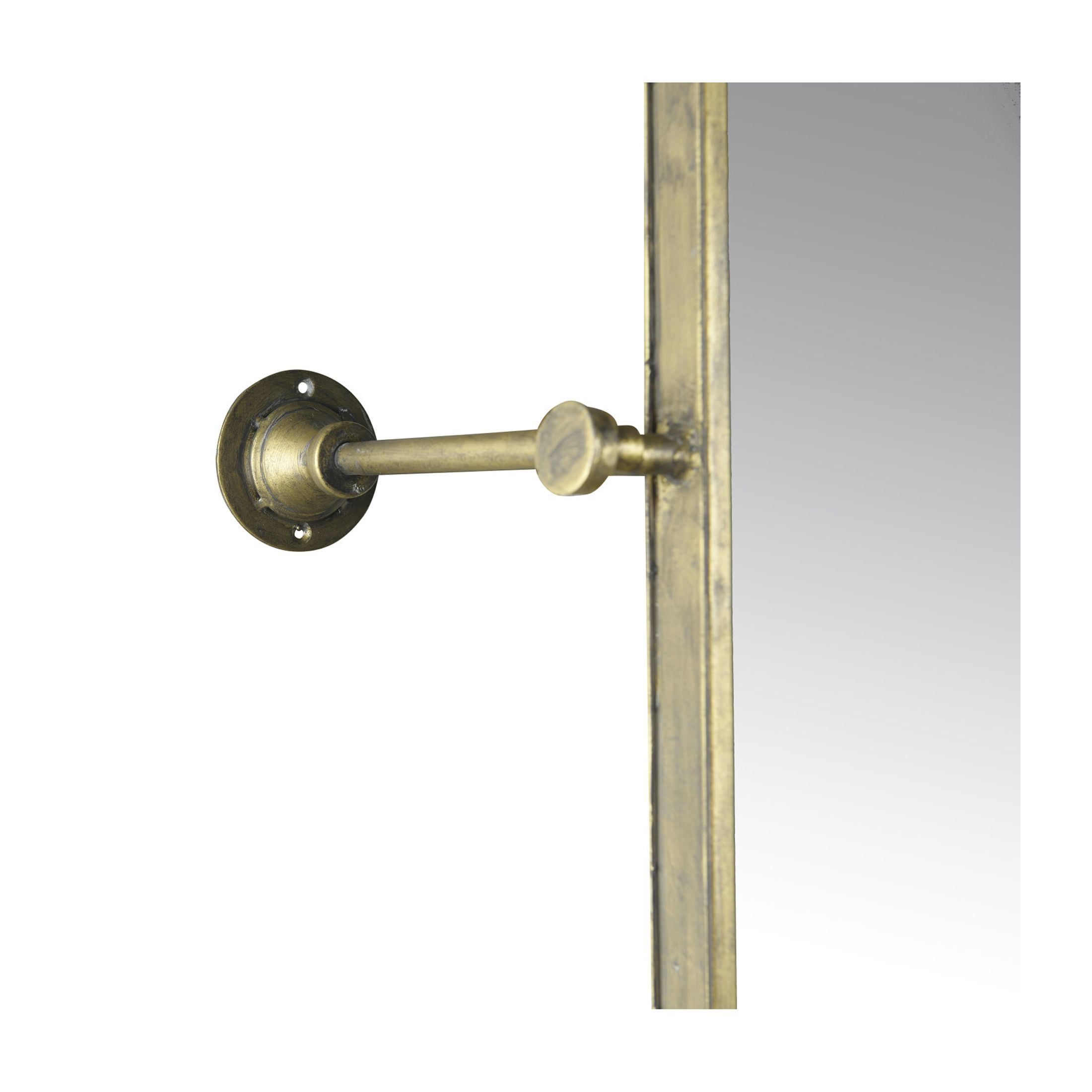 A sleek metal wall mirror that features a modern metal frame and industrial wall brackets in an antique gold finish Perfect for adding a touch of glamour and sophistication to any living room, bedroom, or hallway Comes with hanging mechanisms for easy installation, can be hung horizontally or vertically Made of metal, glass, and reclaimed wood Measures 14 inches wide and 27.75 inches high