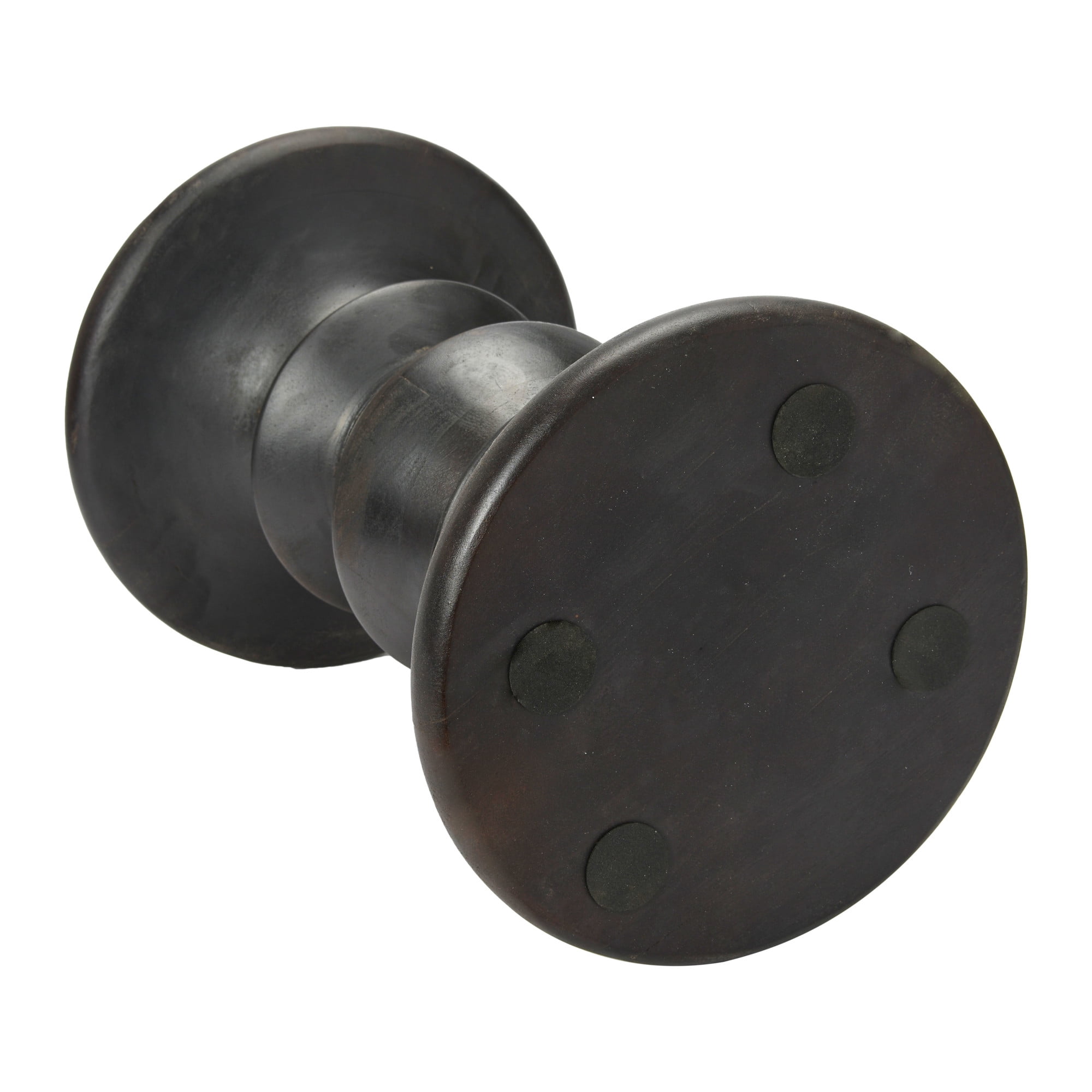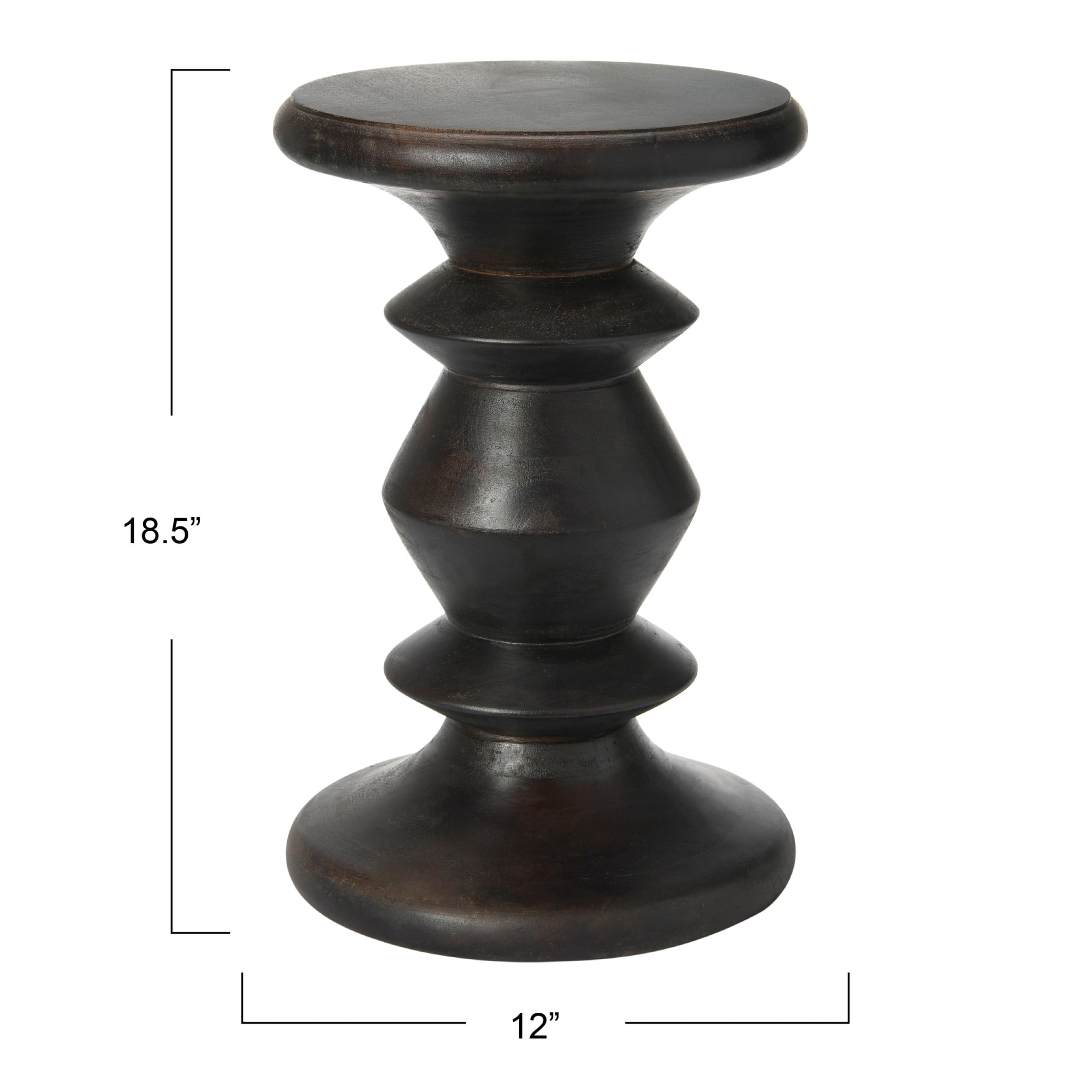 The flat top of this classic piece makes it the perfect side table for drinks and food, while the ergonomically ideal 18.5 inch height allows it to double as a sturdy, comfortable stool The piece is heavy and solid, yet small and movable, perfectly proportioned and balanced Lathe turned solid wood in black walnut finish This item arrives fully assembled 12 inches Diameter x 18.5 inches High