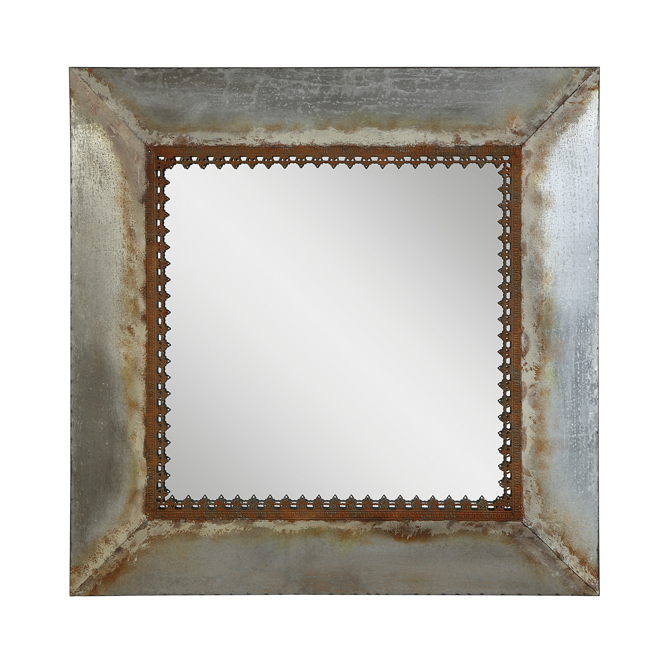 This rustic wall mirror features a distressed metal mirror in a stylishly distressed finish Square metal framed wall mirror in a distressed galvanized finish Add style and depth to any living space with this artfully crafted mirror Made from metal and glass Mirror measures 30″ L x 2″ W x 30″ H Metal & glass construction