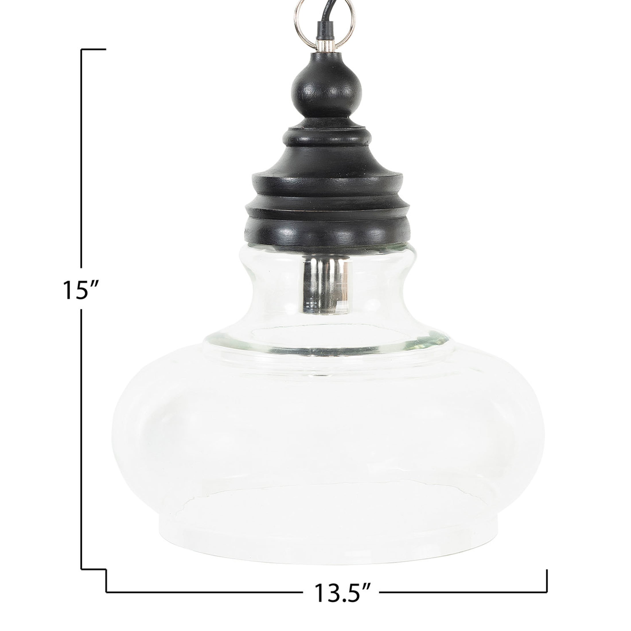 Creative Co-Op Glass and Distressed Wood Ceiling Light, Black
