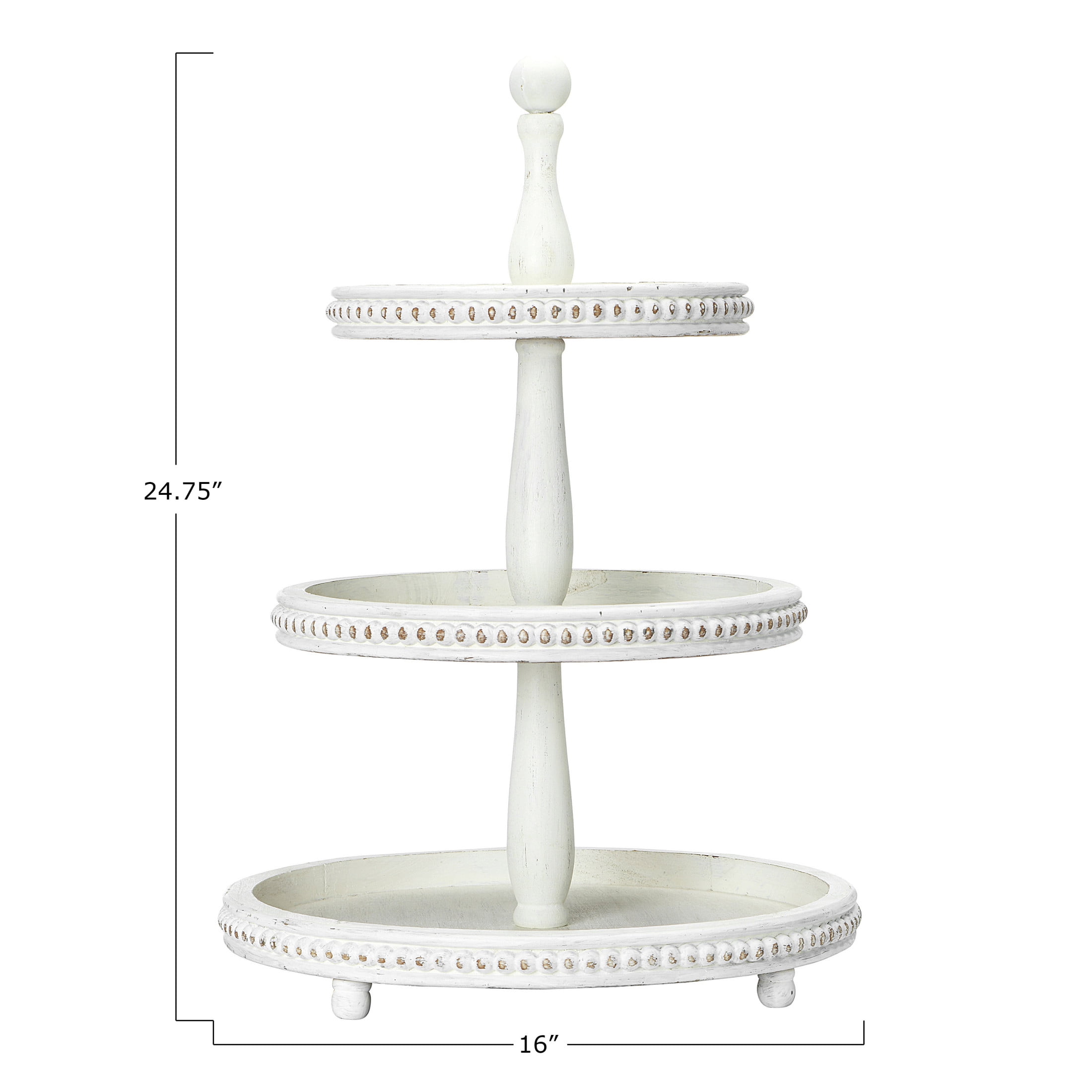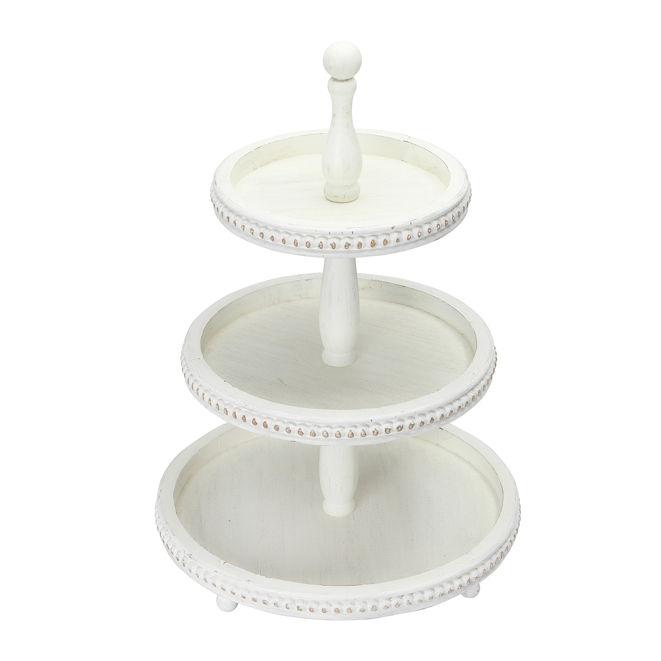 Creative Co-Op Round 3-Tier Decorative Wood Tray, White