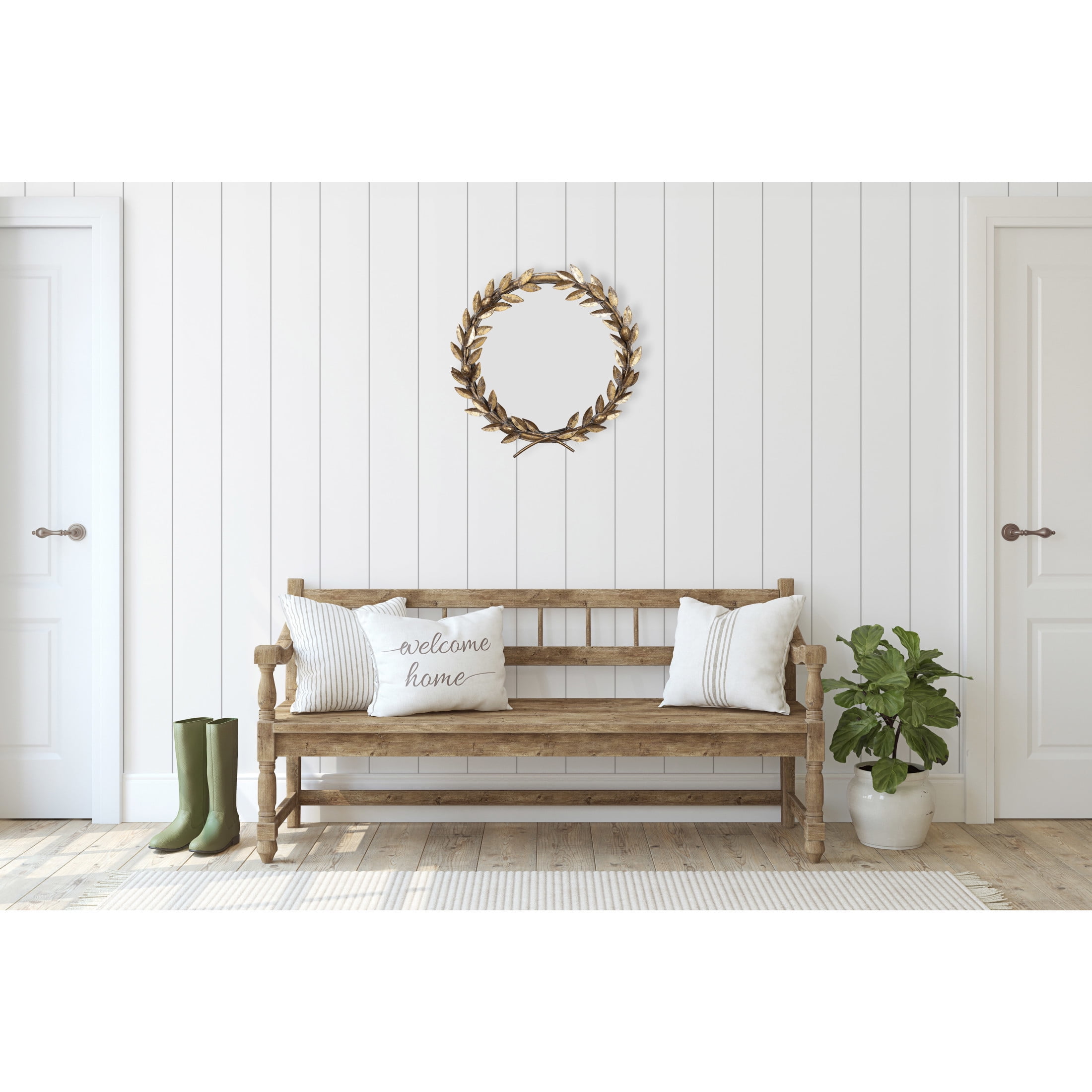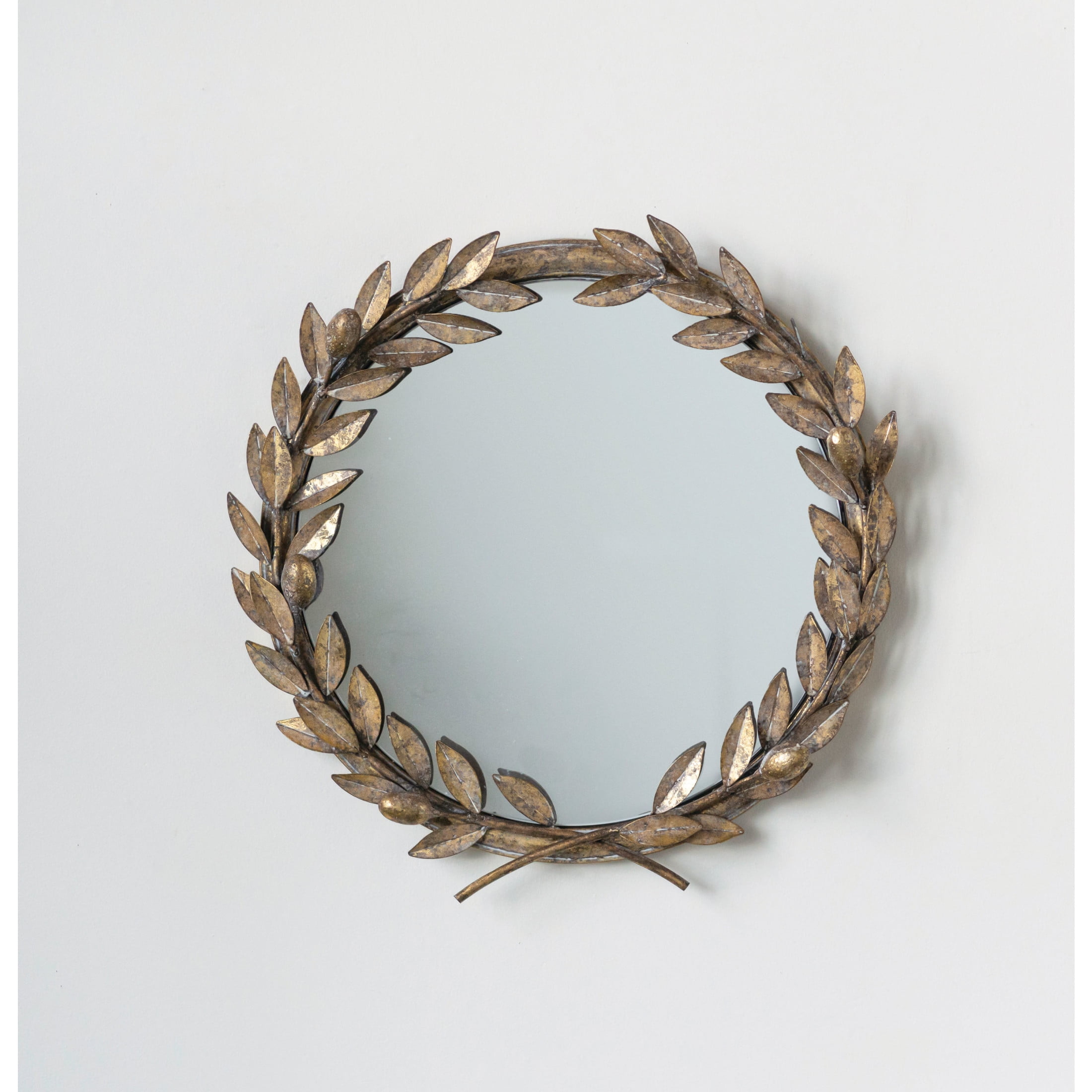 Creative Co-Op Round Metal Laurel Wreath Round Wall Mirror, Gold