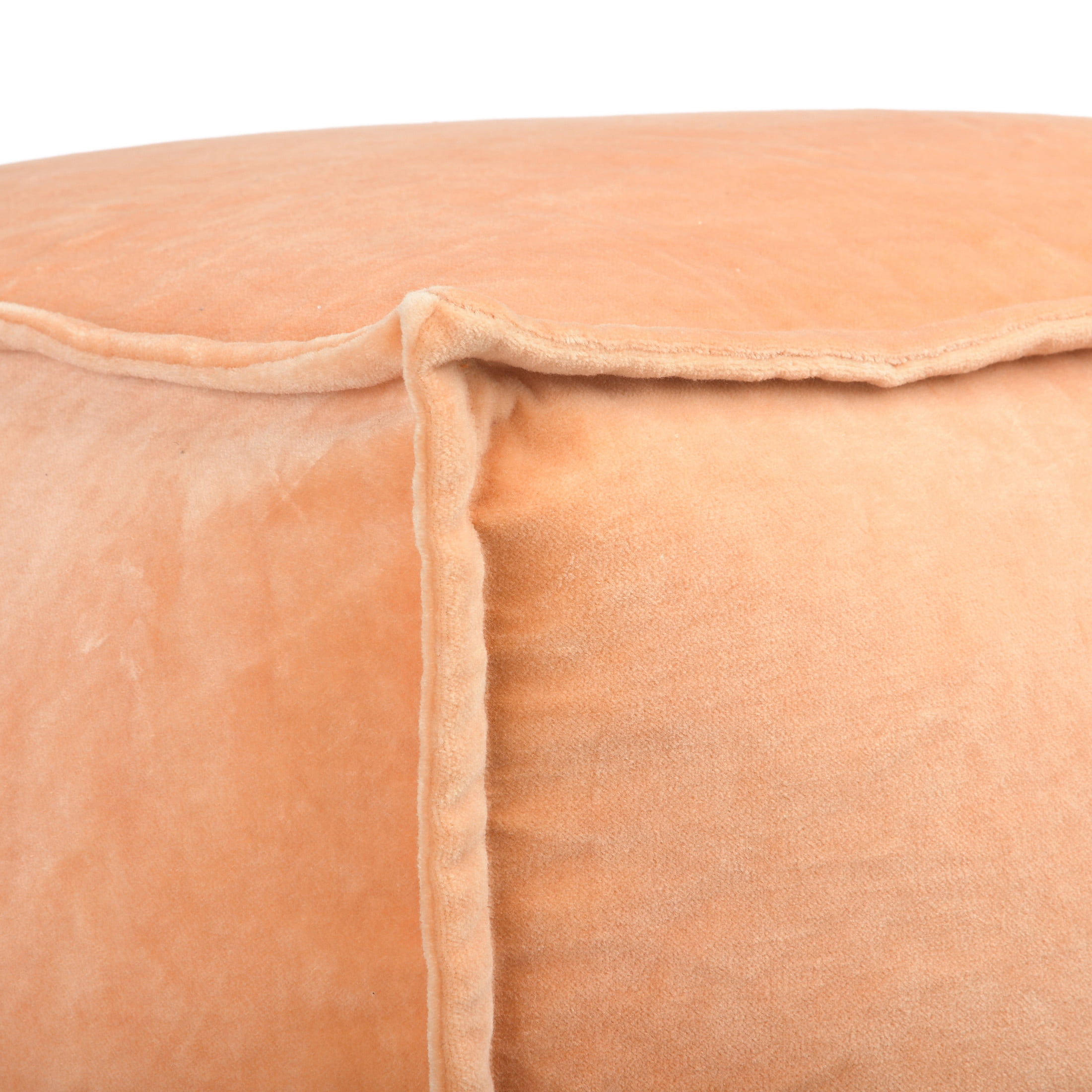 With a soft, cotton velvet fabric in the perfect blush tone and crisp, knife-edge detail this pouf is a magical blend of eye-catching style. Use as extra seating, to rest your legs, or place a wooden tray on top and add candles, drinks, or books for a stylish and practical use of this pouf.