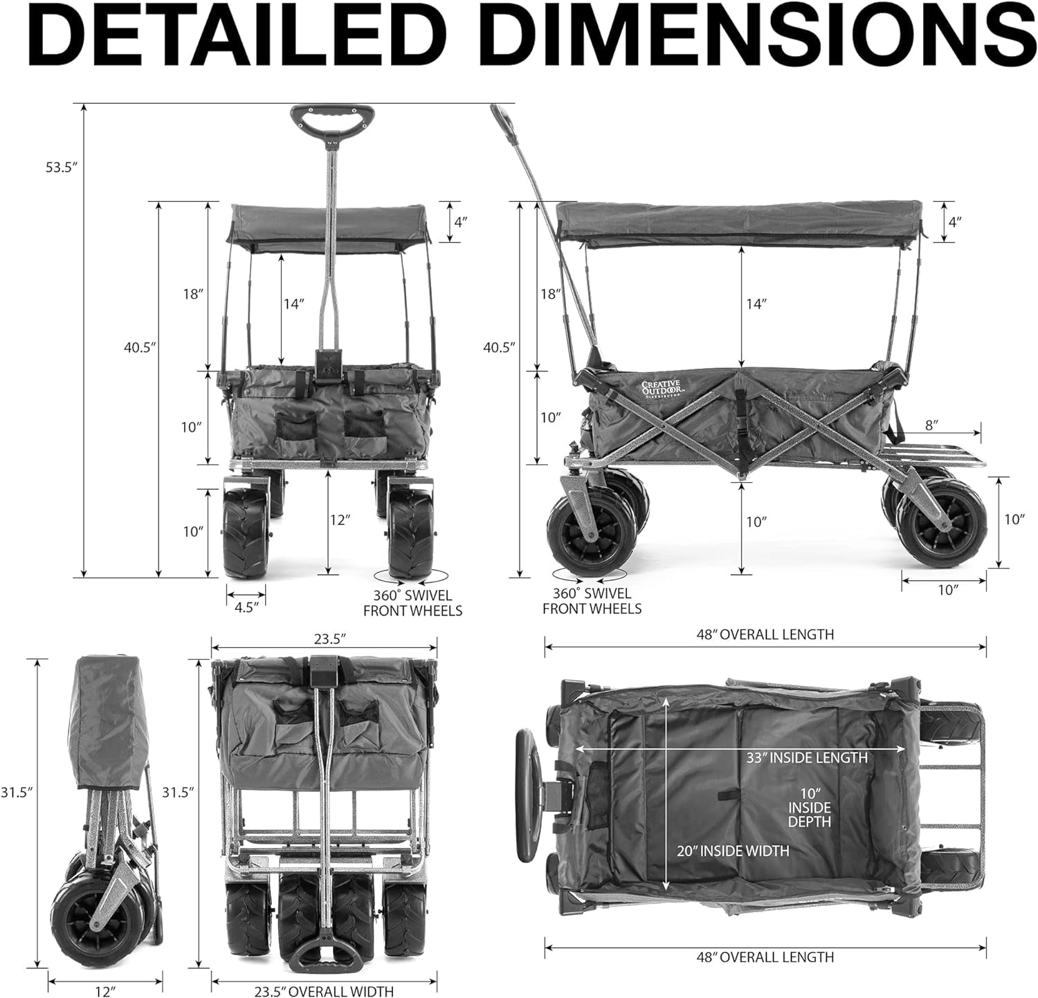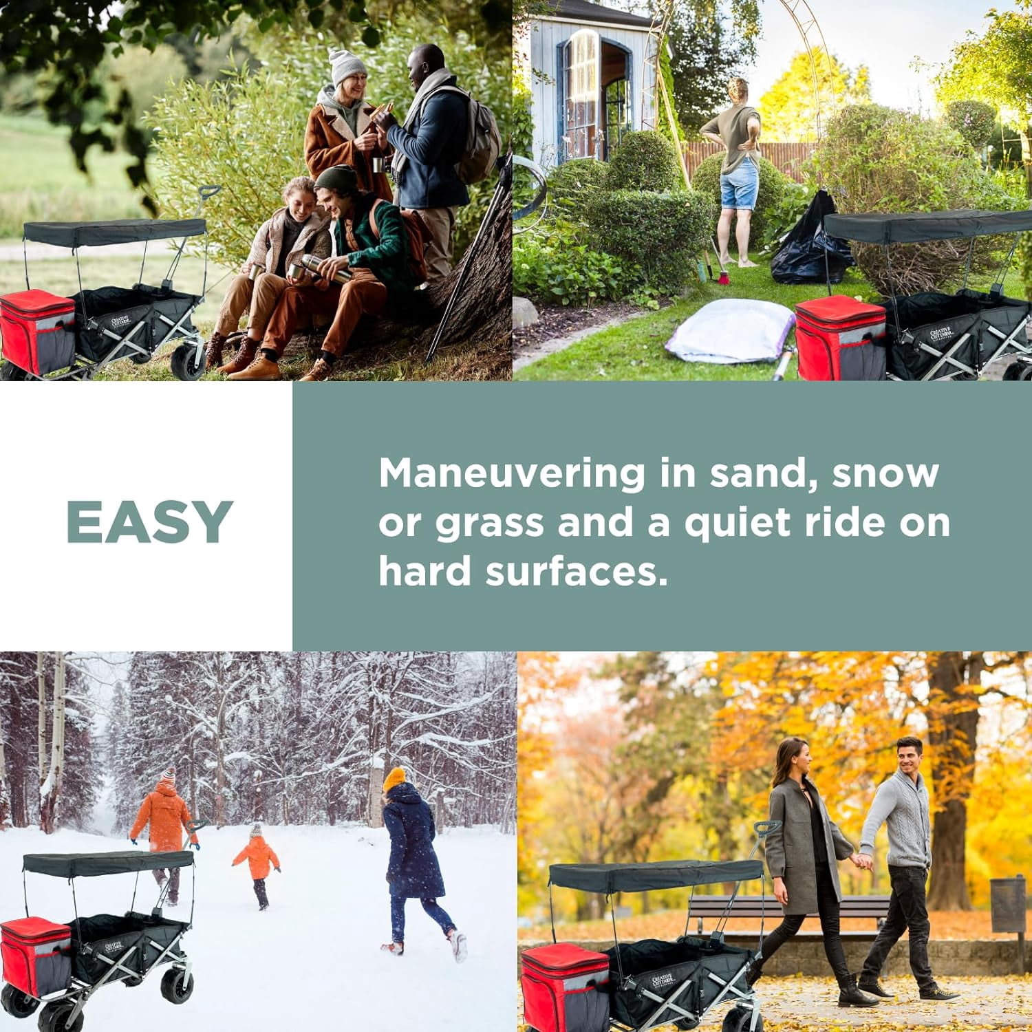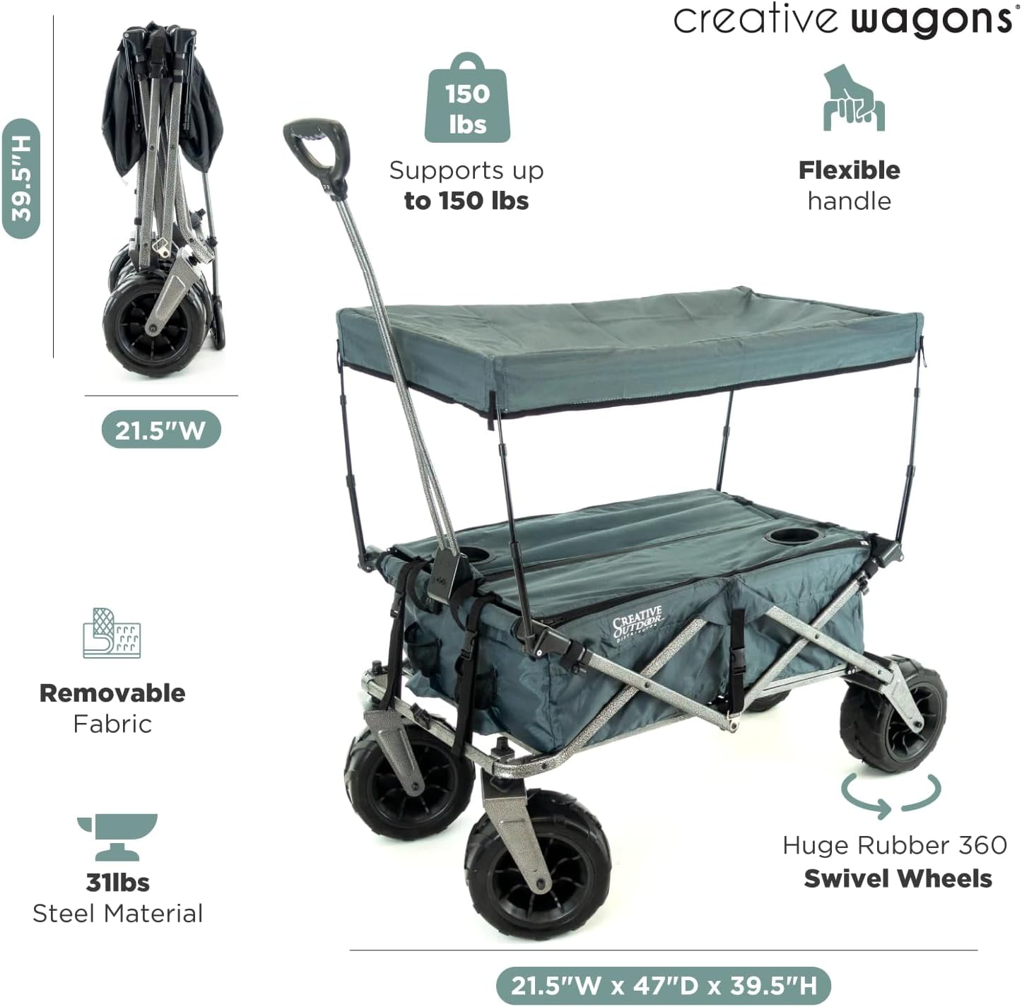 Creative Outdoor Folding Wagon with Canopy and 10” Big Wheels for Sand, 150lbs Capacity, Gray