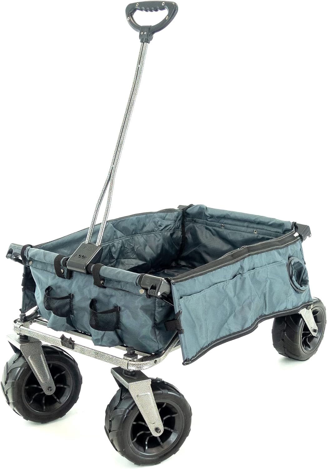 Being active outdoors typically comes with a lot of necessary gear and equipment. Avoid the hassle of having to manually carry all your belongings on your upcoming adventures with our beach wagon! Designed to make both everyday and extreme outdoor lifestyles easier, our heavy duty wagon can accompany you to wherever you may need it to be! With its 10” big rubber wheels, it can traverse through sand, mud, and any other surface. Our all terrain wagon also comes with the added storage of five (5) compartments on each side along with an extendable cargo rack for your cooler. Running out of space for your stuff will no longer be a problem thanks to this utility wagon. The outdoors are calling, so come out rolling with the Creative Outdoor Folding Wagon with Canopy and 10” Big Wheels! To make sure that your things are secure and safe, our folding wagon is designed to support up to 150lbs of weight through its heavy duty fabric and durable alloy steel. All of the materials used in crafting our wagon are chosen to ensure quality. The portable wagon also comes with a removable canopy that allows you to safely transport your valuables, even under the heat of the sun or the cold rain. But our wagon with canopy isn’t just for daring explorers and outdoor adventurers, it’s perfect for everyday users too. Our wagon is great for shopping and groceries, transporting your food for a picnic, or even using it for deliveries! You can be assured that in whatever situation you may need it, our wagon is there for you to use. Once you’re ready to head home and rest, easily load our portable wagon onto your vehicle by simply folding it up, ensuring there’s more than enough room in your car for all the other things you need to bring home. Storing it at home is also effortless as its compact folded size allows you to keep it in your closet or garage. No more lugging around your gear and equipment. Add the Creative Outdoor Folding Wagon with Canopy and 10” Big Wheels for Sand to your cart, and roll to your goals today!
