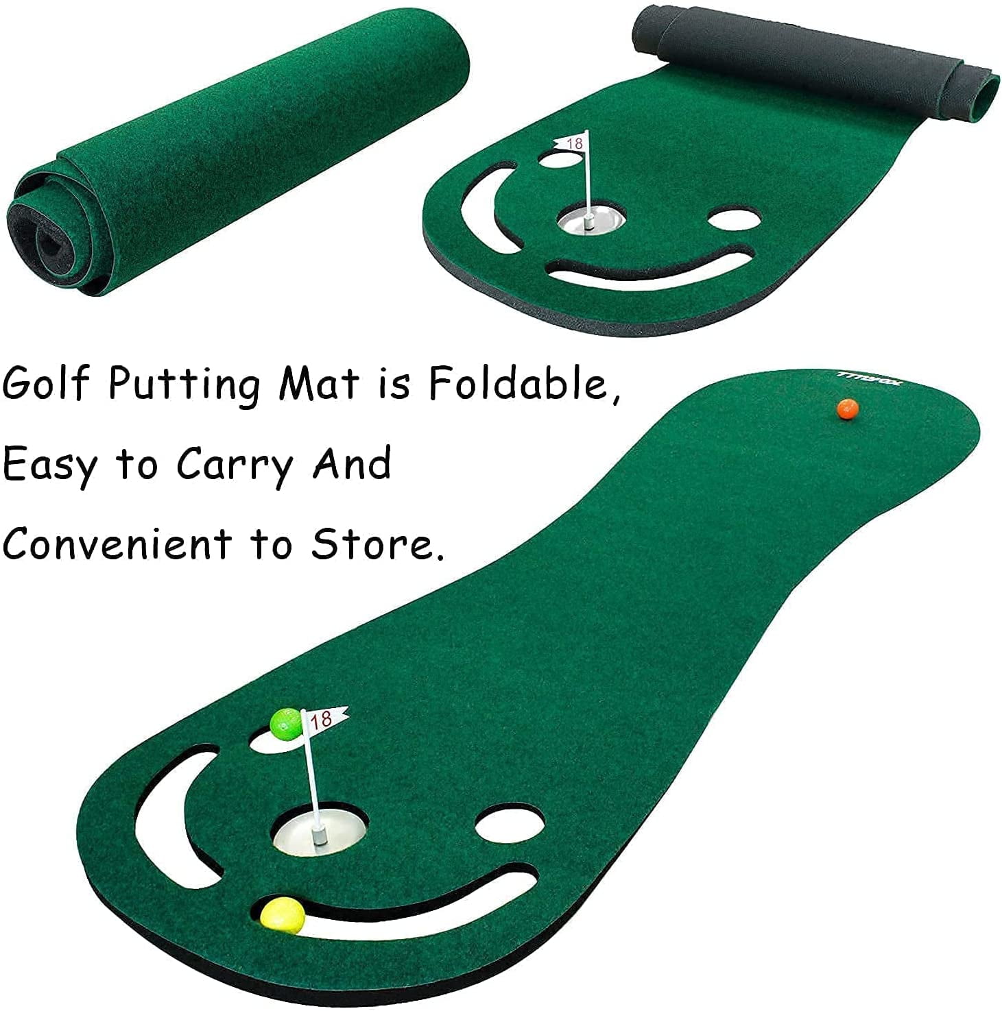 Improve Putting Skill — No matters your skill or age, this golf putting mat helps you hone your game skills on the green while training different angles and distances to the hole. Ideal Gift for golfers or children/ kids. This putting green kids be used by left and right-handed. Portable & Easy Storage — Our 78 inches kids golf set is lightweight, easy to carry, roll up and store. Sets up freely indoor/ outdoor patio backyard home living room garage with the right amount of space. Putting, training, and practicing drills at anytime. Home, Party and travel Play Best Choice. Parent-child Time and Beginners —Using a putting green outdoor rug/ indoor putting green kids use can help you better putt skills, help you better target your putting with consistency. Have more parent-child time Improve your child’s concentration with practice putting green kids. Home Practicing Comfortably —This indoor putting green offering an instant lay-flat top side with non-slip rubber bottom. A real-life green, indoor golf putting aid that you can use within your very own home.