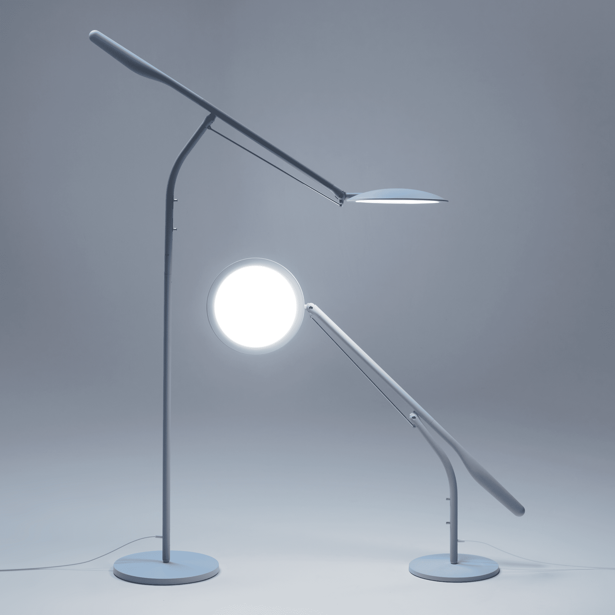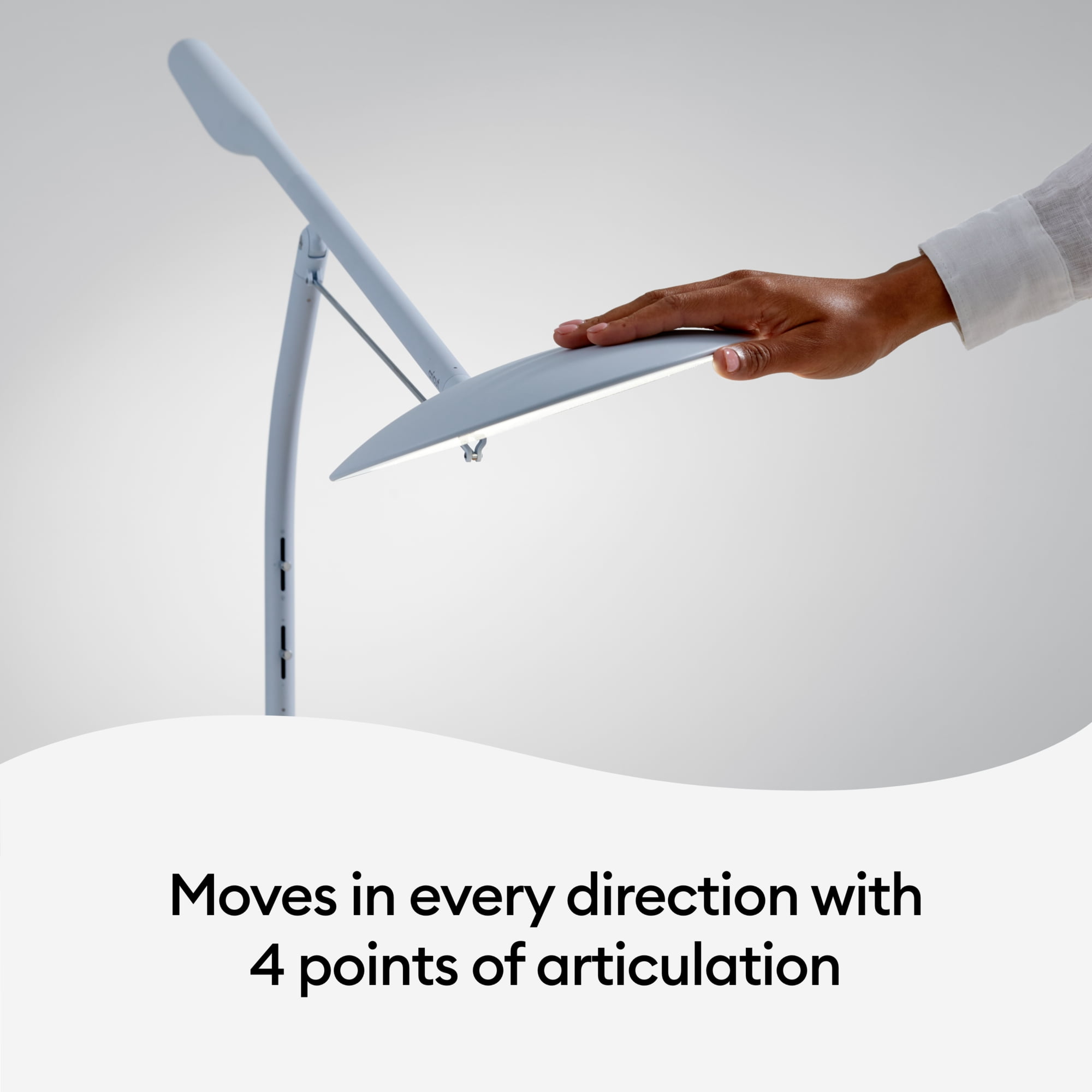 Floor lamp dimensions: D: 10.5 in, W: 31–39 in, H: 46–56 in (D: 27 cm, W: 79–99 cm, H: 1.2–1.4 m), Mist Floor lamp dimensions: D: 10.5 in, W: 31–39 in, H: 46–56 in (D: 27 cm, W: 79–99 cm, H: 1.2–1.4 m) Large head lights 4 sq ft (0.37 sq m) of workspace 95 Color Rendering Index (CRI) for rich, accurate colors Adjustable brightness up to 3000 lux, plus light color temperature from warm to cool white Fully adjustable – 4 points of articulation Long-lasting, energy-efficient LEDs