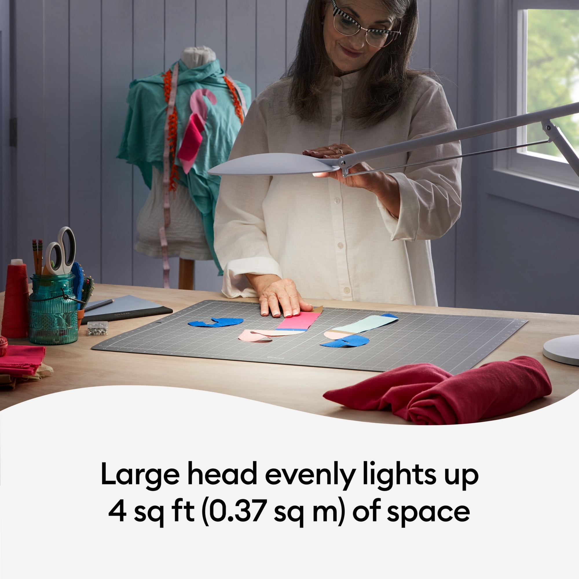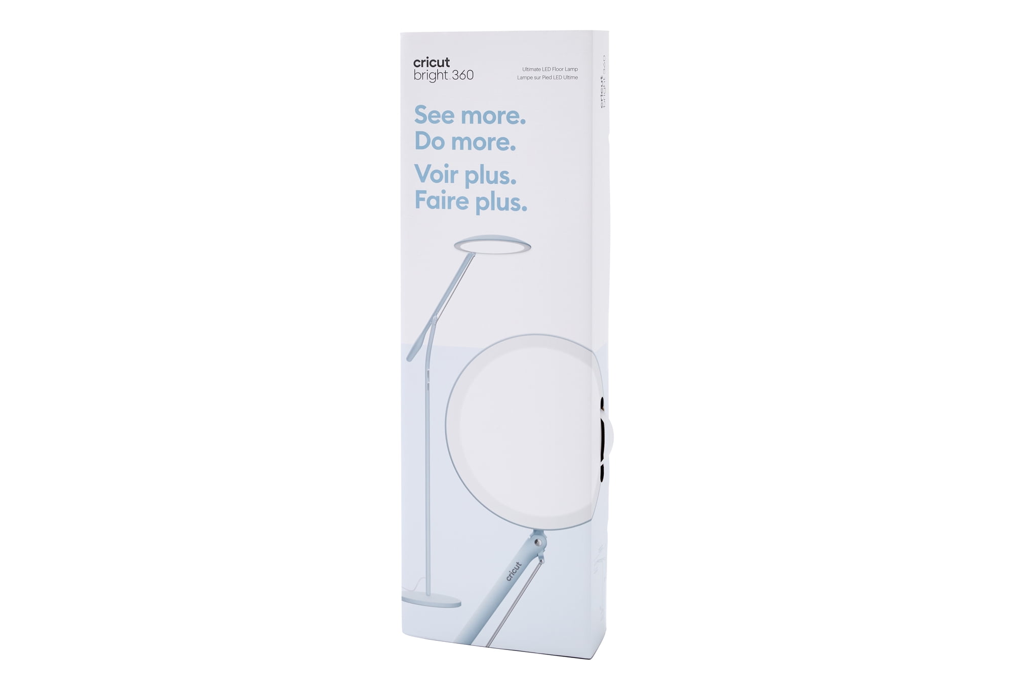See your projects in a whole new light with Cricut Bright™ 360, the ultimate LED floor lamp. Its large, broad head evenly lights up your entire workspace. With a gentle push of the hand, the lamp pivots, rotates, and easily glides into the just-right position for every craft. Whether you’re working on a delicate accent piece or searching for the perfect matching shade, you’ll see colors and details with exceptional clarity. A high 95 CRI (Color Rendering Index) means your colors will appear more accurately than with a traditional bulb. Use the sleek sliders to adjust brightness (up to 3000 lux) as well as light color temperature (warm to cool white) to cast ideal light in any space. Comfortably see every detail with less glare, hotspots, and eye strain. From mid-craft to final project photos, Cricut Bright™ 360 shines light your way.
