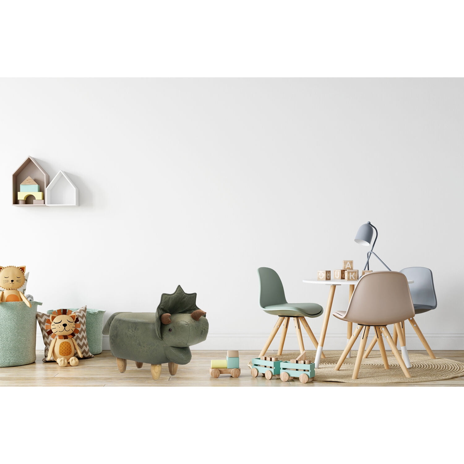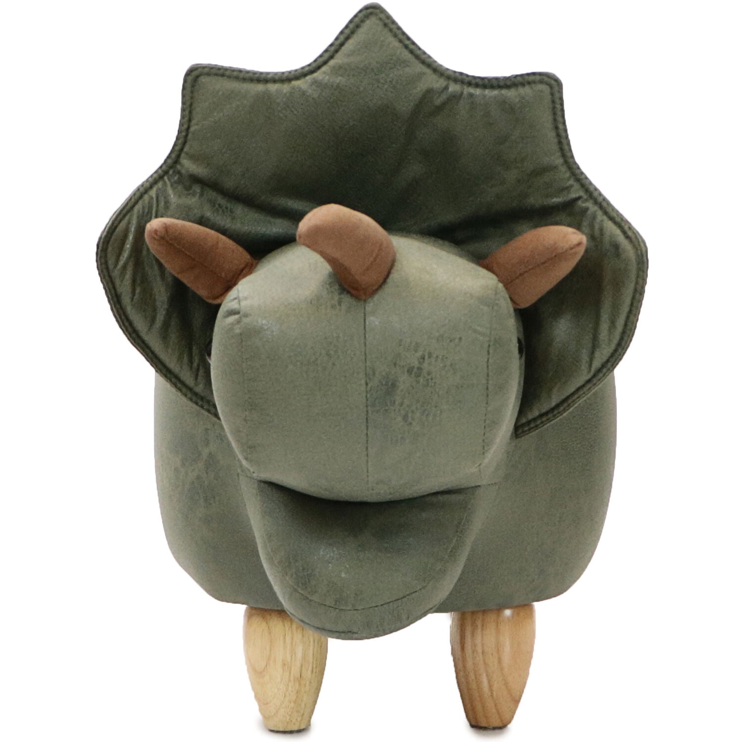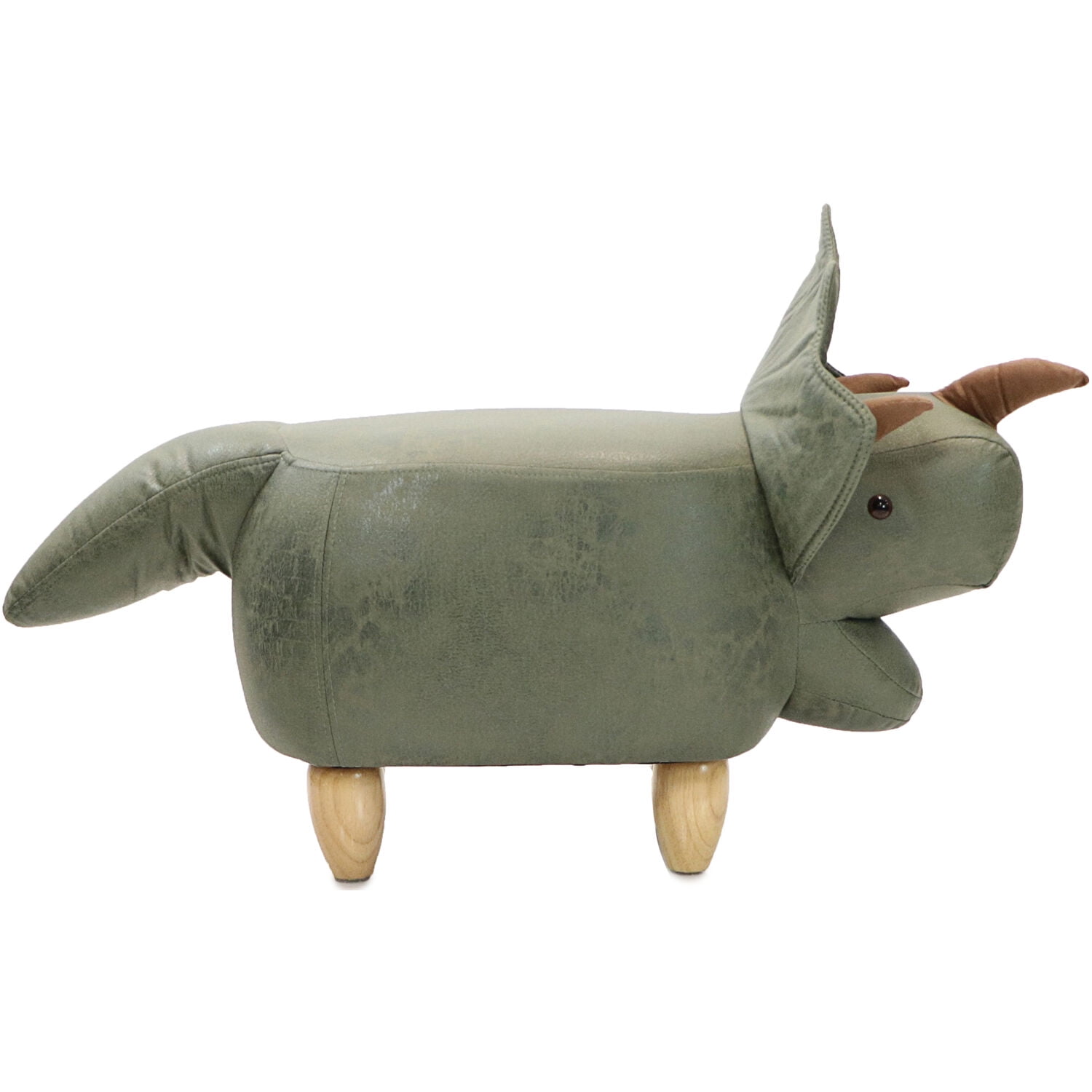 CUTE ANIMAL OTTOMAN: It’s a triceratops! Use this multifunctional dinosaur as whimsical decor in a living room, kid’s room, nursery or playroom – perfect as a footstool or small chair. Adults and kids alike will fall in love with this adorable little stool. SOFT AND COMFORTABLE: Soft faux-leather is comfortable enough to rest your feet on or sit on. Use it as a footstool under your desk or as an accent piece. Your small pets will love lounging on this high-quality cushioned stool whenever they can. DURABLE AND STRONG: Firm, sturdy legs provide safety and stability. Felt furniture pads on the feet allow you to move it without damaging your floors. The material is easy to spot clean and will provide years of fun. The assembly couldn’t be easier; simply screw the legs on, attach the felt pads, and enjoy! GENEROUS SIZE: This unique and playful dino furniture is 14”L x 36”W x 20″H (14″ seat height) – the perfect size for any room in your house no matter the style. Fun and stylish animal-shape cushioned furniture designed for sitting and resting your feet Playful accent for baby’s nursery, toddler’s bedroom, children’s playroom, family room, living room or any area Choose from a large variety of cute animal shapes – pair this footrest with your favorite chair Animal character seating is ideal for your farm theme or zoo theme decor Four strong, sturdy rubberwood legs keep this footstool stable and safe (300-lb. weight capacity) Thick comfortable padding provides extra comfort for kids and adults alike High-quality fabric for quick and easy spot cleaning adorns this hassock Durable stitching holds well for everyday use Felt attached to bottom of legs to prevent scuff marks Quick and easy leg assembly required 1 year warranty Seat Height (from seat to floor): 14 inches Leg Height (from belly to floor): 4 inches