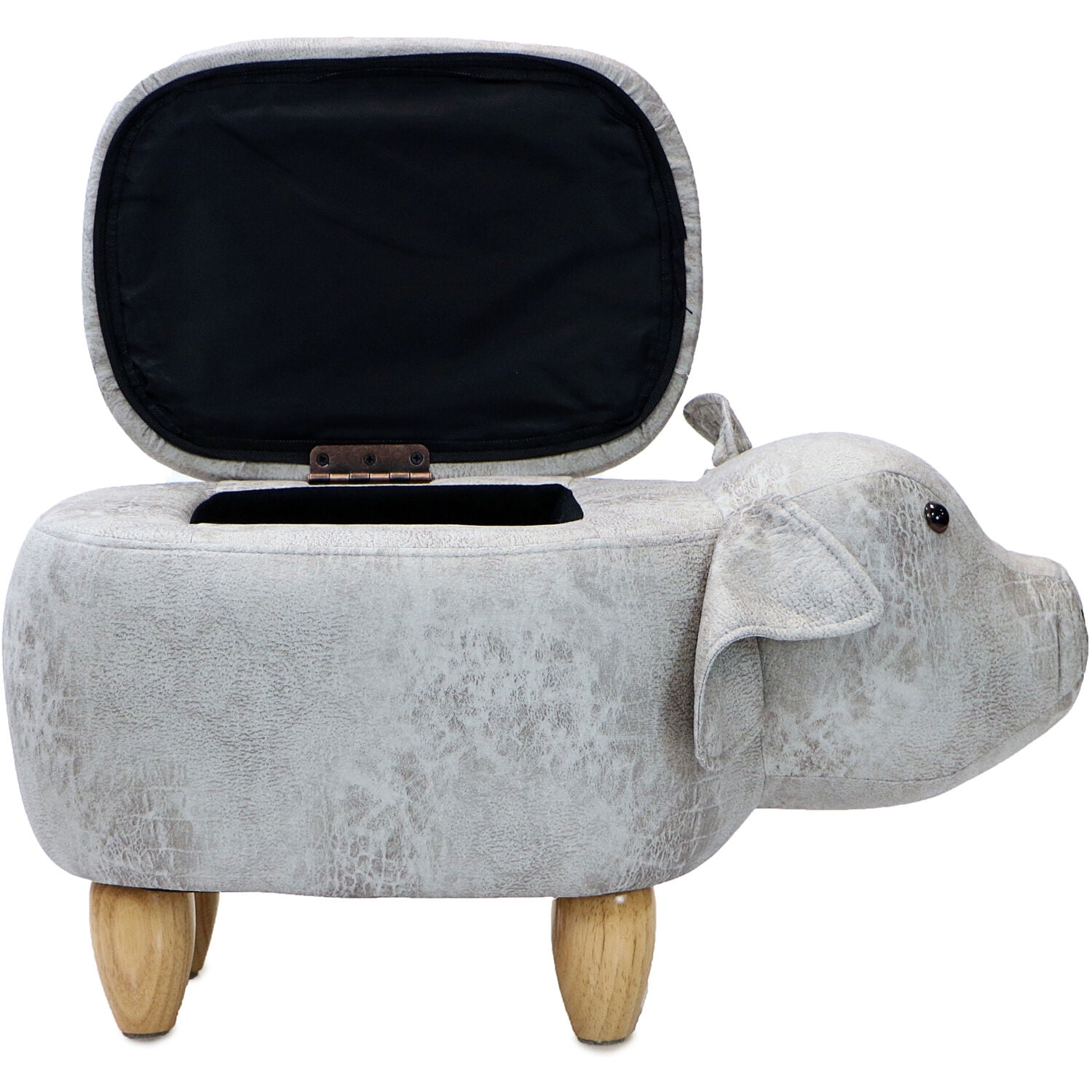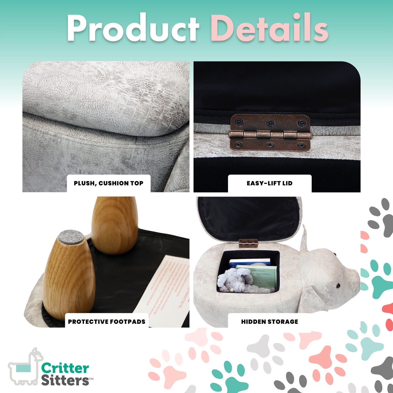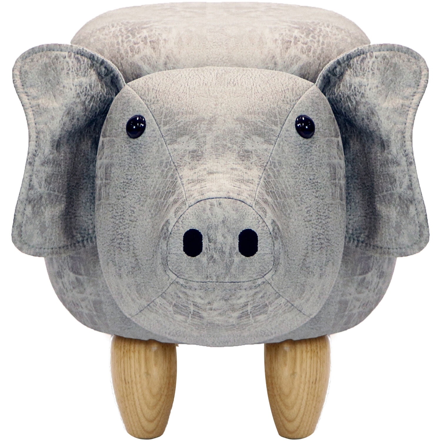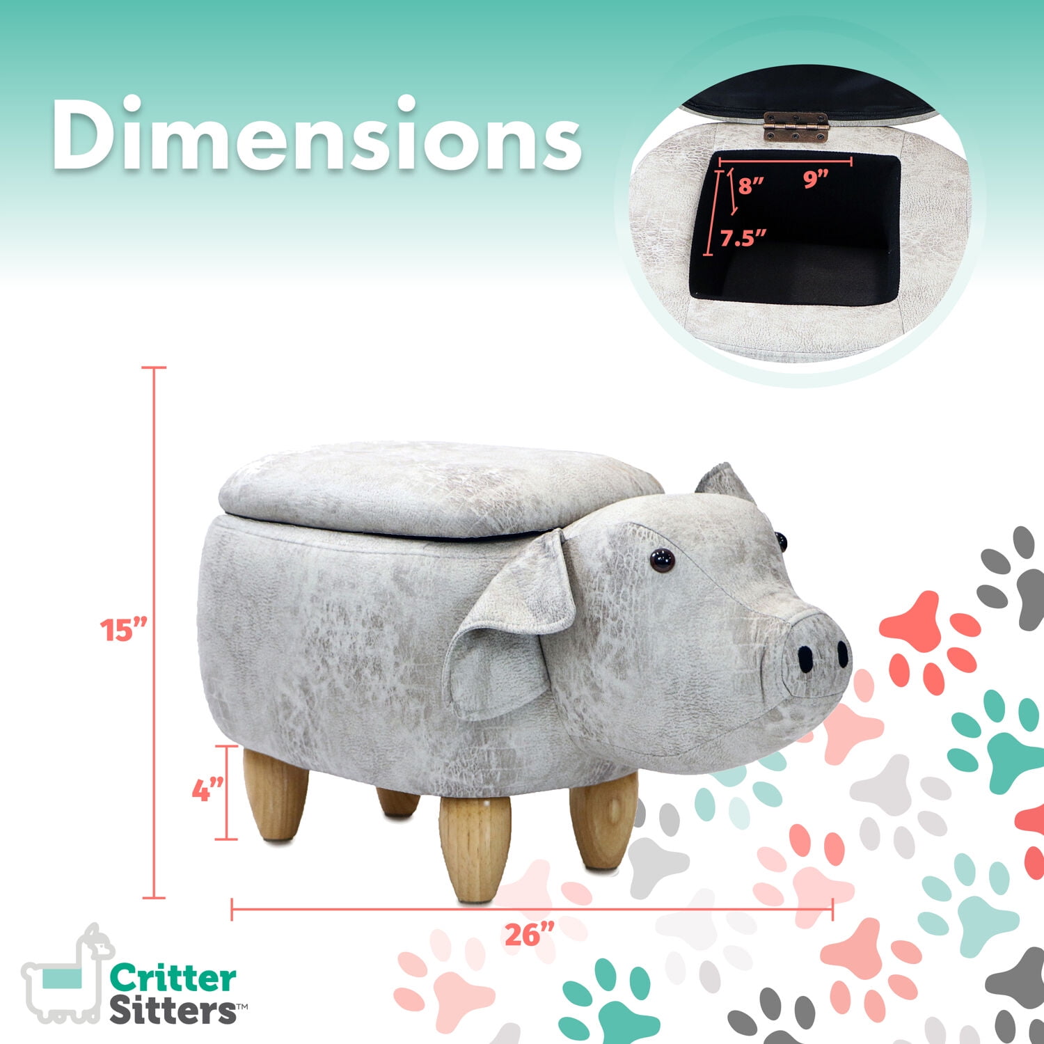 Critter Sitters 15-In. Seat Height Light Gray Pig Animal Shape Storage Ottoman – Furniture for Nursery, Bedroom, Playroom, and Living Room Decor