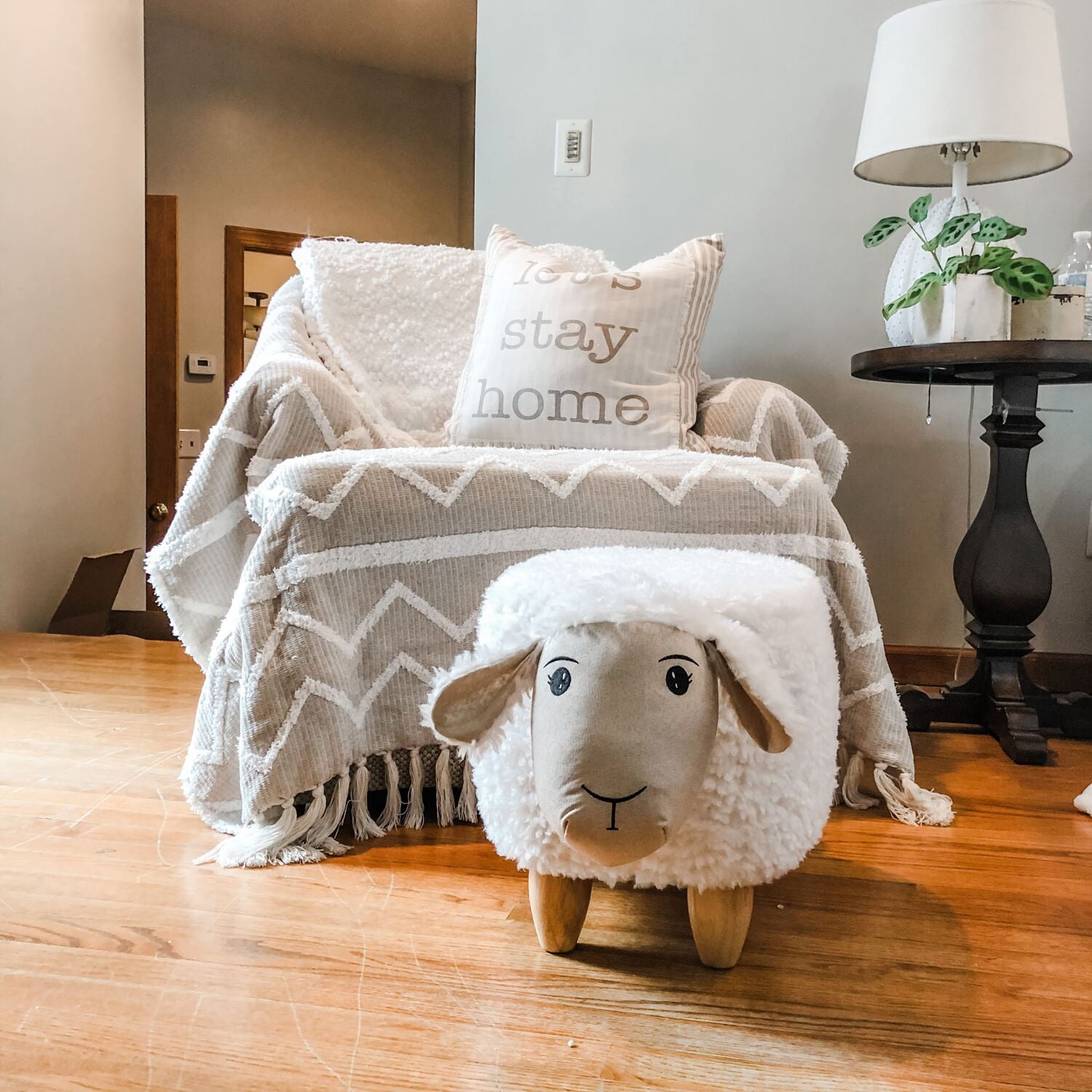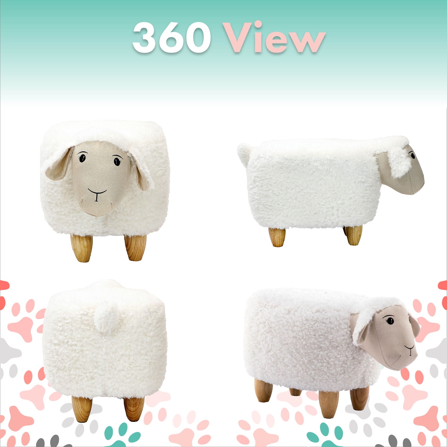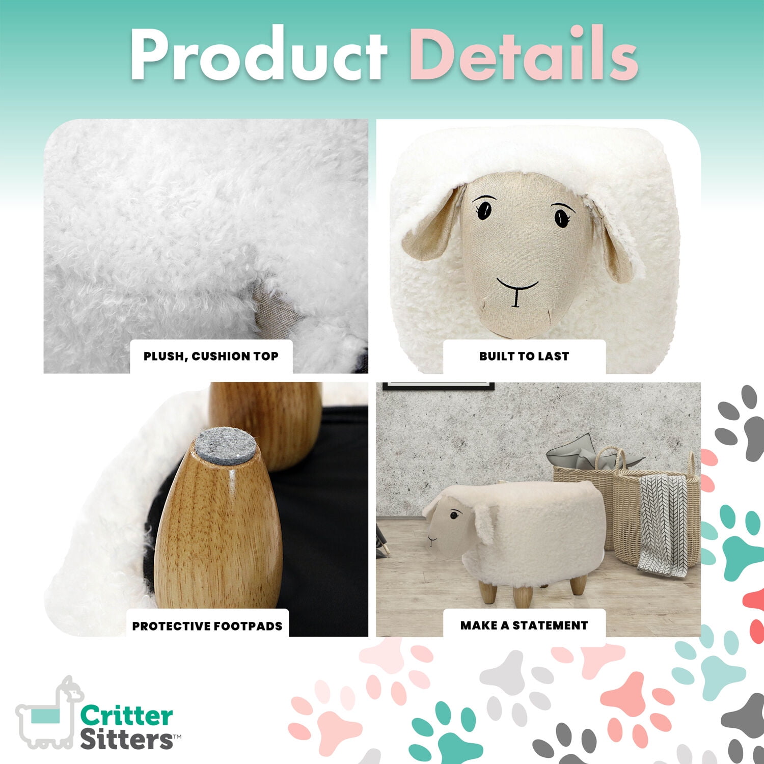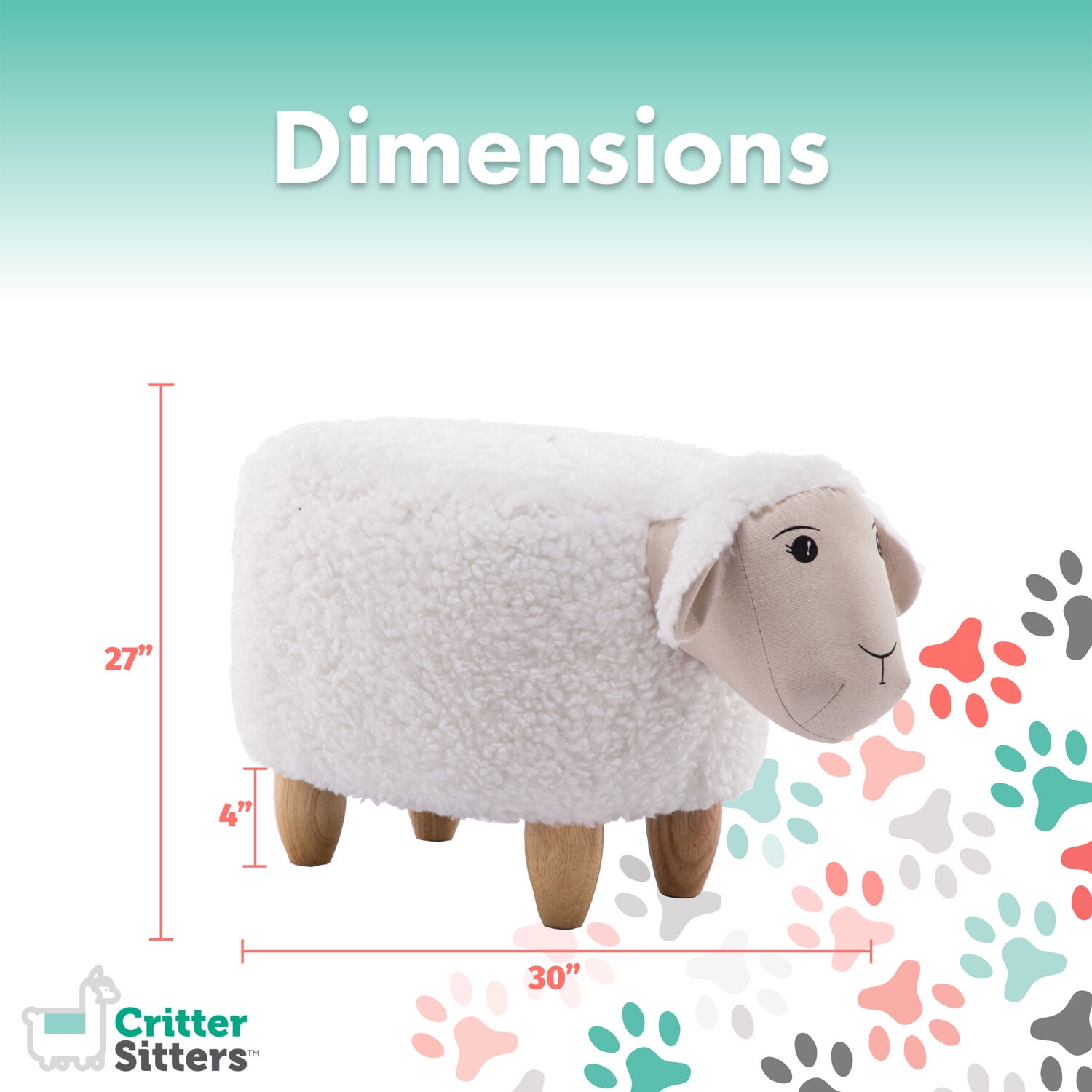 Critter Sitters 15″ Seat Height Plush Animal Shape Ottoman Furniture for Nursery, Bedroom, Playroom & Living Room Decor (White Sheep)