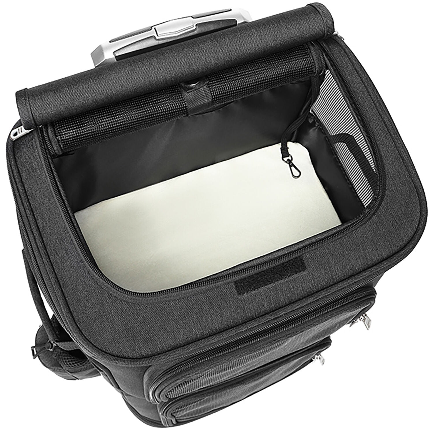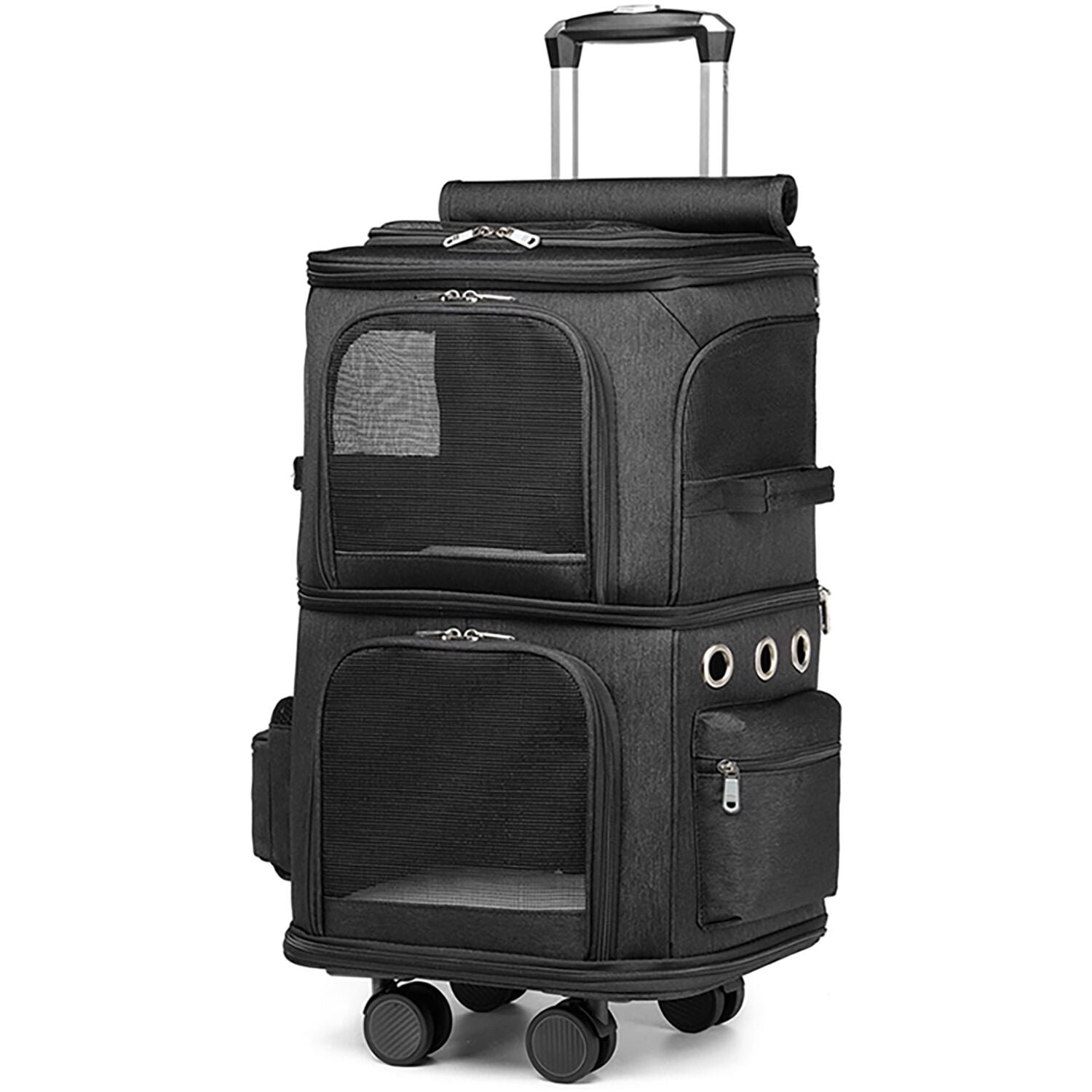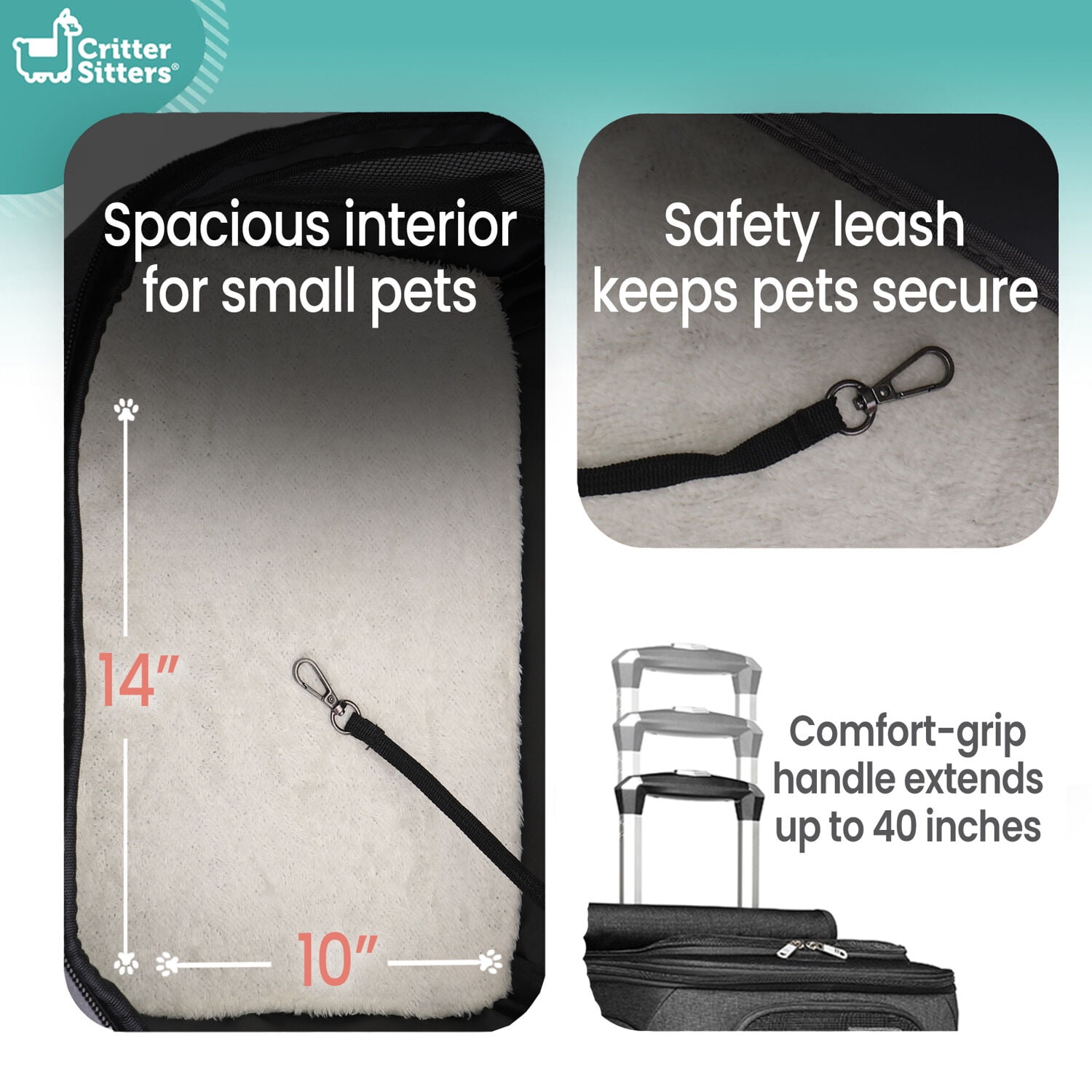 Critter Sitters Double Decker Rolling 4-Wheel Pet Backpack Suitcase for Small Dogs/Cats with Scratch Resistant Breathable Mesh Window | Safety Leash | Durable Transporation for Multiple Animals