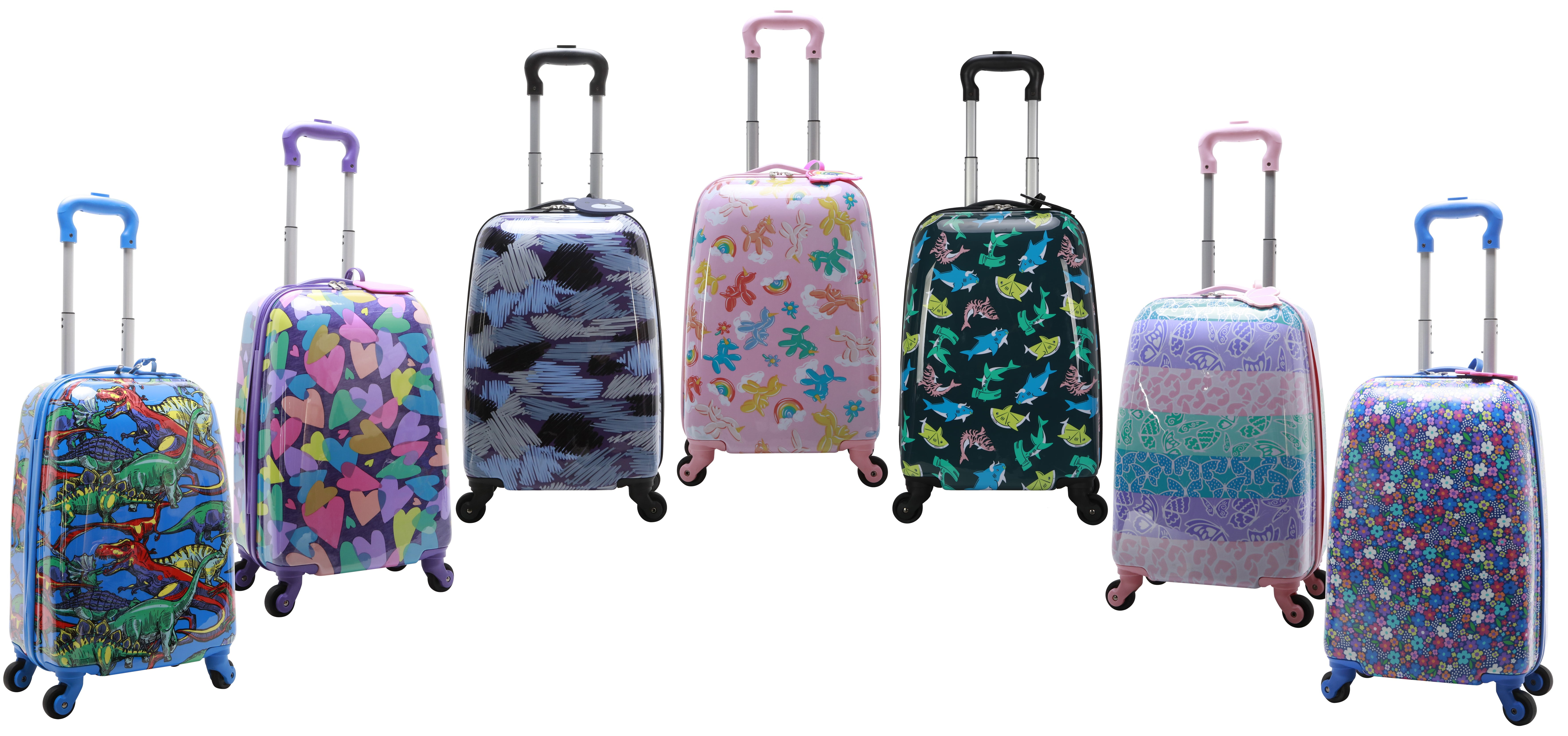 Find everything you need for a quick trip with this one bag. Extend the telescopic handle to navigate this bag with ease. This 18-inch carry-on piece also includes 4 – 360 degree spinner wheels that make traveling a dream. This carry-on has seven fun and stylish kid prints that gives their pilot case something that stands out from the crowd. Pick up this exclusive carry on piece today, only at .