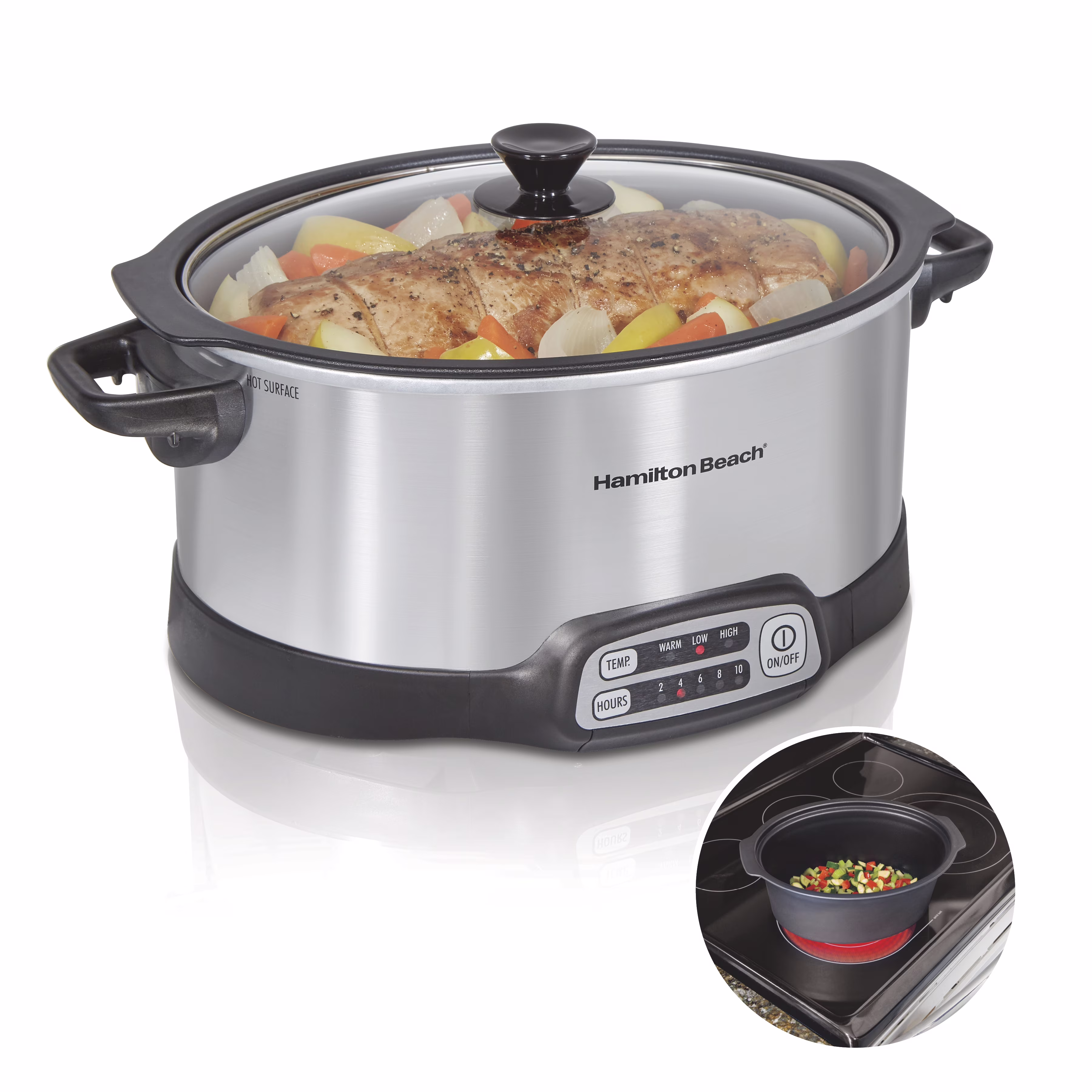 Elevated Design: Features a streamlined design, minimalist aesthetic, and matte Mushroom color Cook & Carry Locking Lid: Travel-proof locking lid features a tight seal that prevents leaks and spills, for mess-free travel when you’re on the go Little Dipper Food Warmer: Bonus 16-oz. Little Dipper warmer is perfect for dips and sauces Little Dipper Food Warmer: Bonus 16-oz. Little Dipper warmer is perfect for dips and sauces One-Touch Control: 4 pre-programmed settings allow you to choose the best time and temperature for your meal Large Capacity: 7-quart size feeds 9+ people, perfect for family meals, potlucks, or feeding a crowd