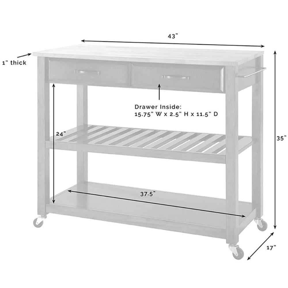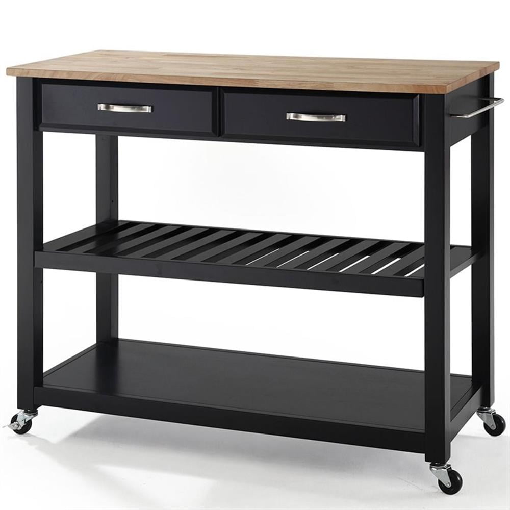 Constructed of solid hardwood and wood veneers, this mobile kitchen cart is designed for longevity. The handsome raised panel drawer fronts provide the ultimate in style to dress up any culinary space. Two deep drawers are great for holding essential items, such as utensils or storage containers. The adjustable/ removable shelf is great for appliances. Remove the shelf completely to allow for storing larger objects. The heavy-duty casters provide the ultimate in mobility. When the cabinet is where you want it, simply engage the locking casters to prevent movement. Style, function, and quality make this mobile solution a wise addition to your home. Features: Finish: Black and Natural Material: MDF, Birch Veneer 25%, P2 Particle Board, Birch Veneer 20%, Solid Hardwood, Wood Veneers 50%, Solid Poplar Wood 5% Hand-rubbed, multi-step finish Beautiful raised panel drawer fronts Brushed nickel hardware Adjustable/ removable shelf Towel bar Heavy-duty caster for mobility Specifications: Product Dimensions: 35″ H x 43″ W x 17″ D Product Weight: 70 lbs Number of Drawers: 2 Arm Height: 0 Back Dimensions: 0 Back Height (IN) Product Dimensions: 3.13 Floor Clearance (IN)