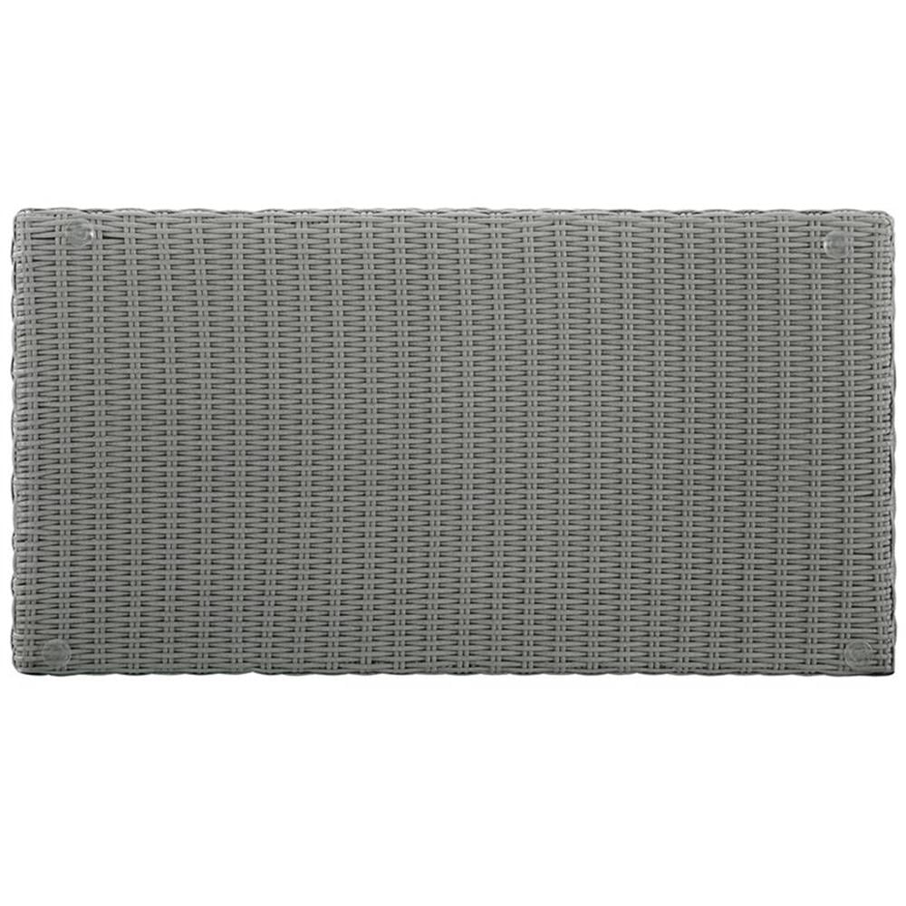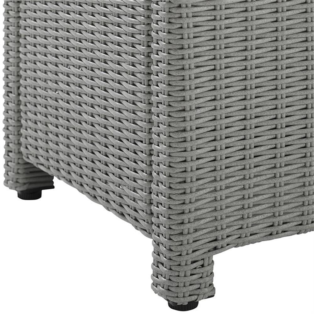 Finish: Gray Material: 60% Steel, 30% PE Wicker, and 10% Tempered Glass Transitional design All-weather resin wicker with rattan look Gray resin wicker Tempered glass table top Durable powder-coated steel frame