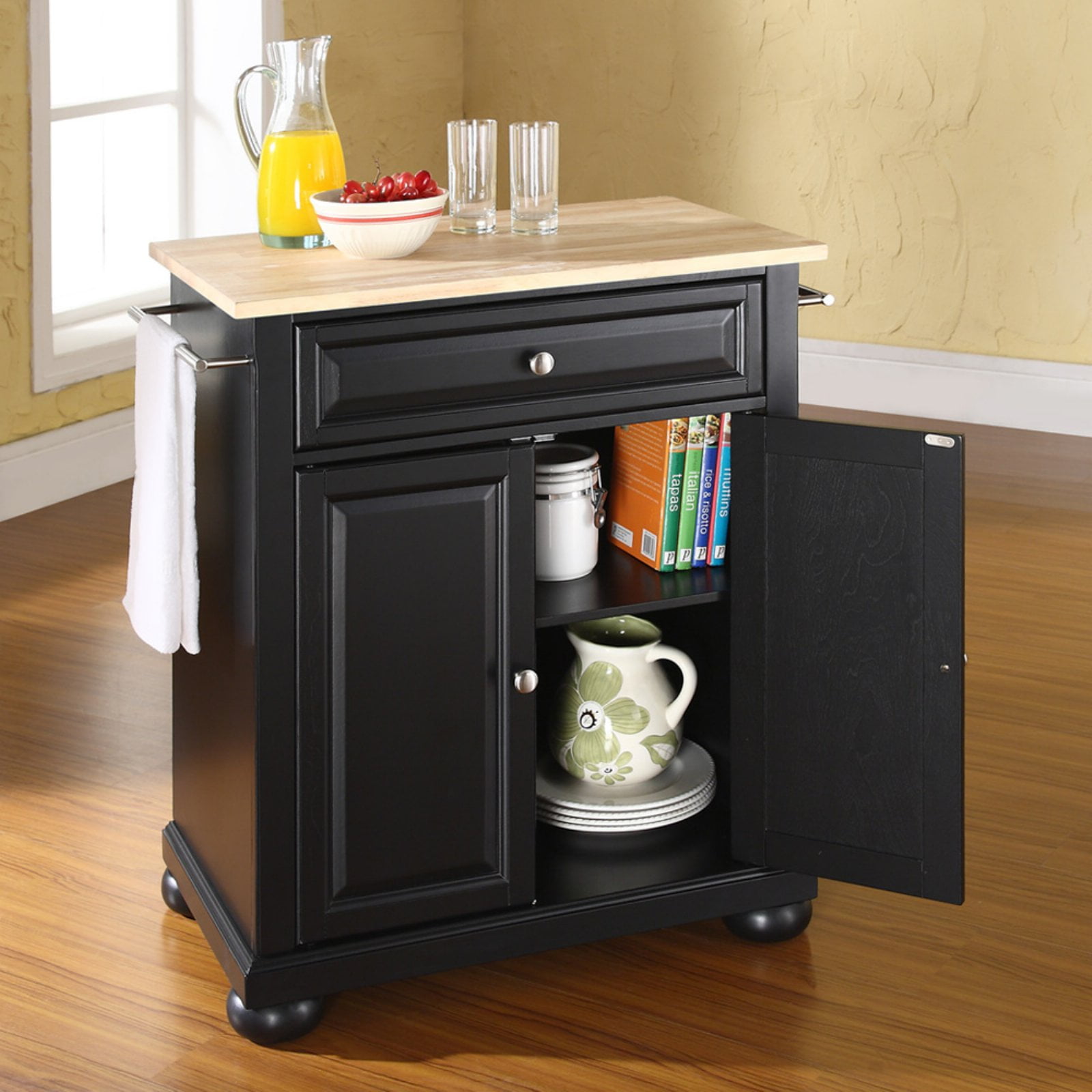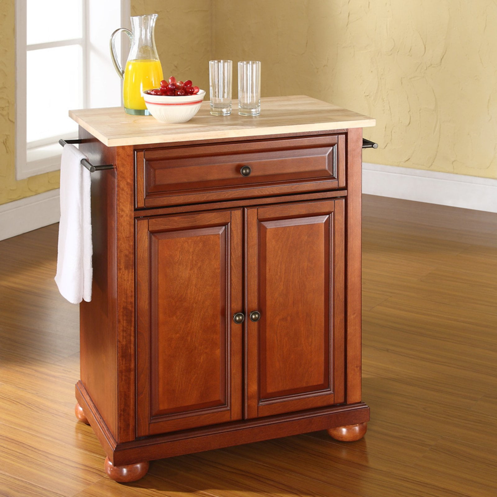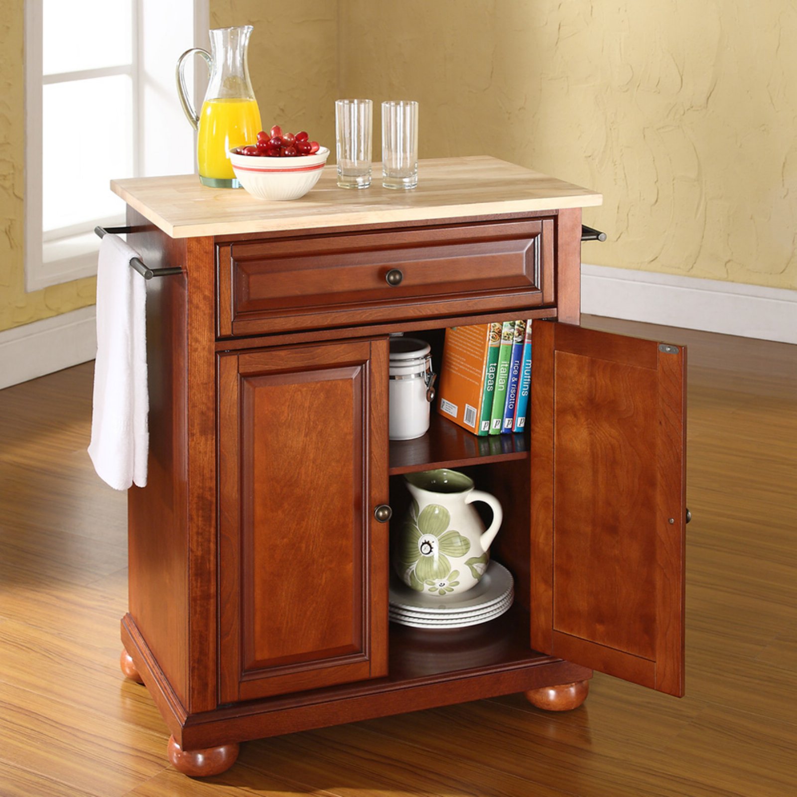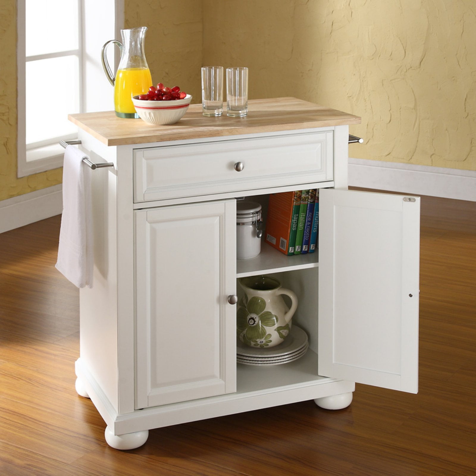 Constructed of solid hardwood and wood veneers, this kitchen island is designed for longevity. The beautiful raised panel doors and drawer front provide the ultimate in style to dress up your kitchen. The deep drawer is great for anything from utensils to storage containers. Behind the two doors, you will find an adjustable shelf and an abundance of storage space for things that you prefer to be out of sight. Style, function, and quality make this kitchen island a wise addition to your home. Features: Material: Solid hardwood/wood veneers 33.33%, solid rubberwood 33.33%, MDF/birch veneer 16.67%, p2 particle board/birch veneer 13.33%, solid poplar wood/solid rubberwood 1.67%, steel 0.83%, iron 0.83% Finish: White, natural Traditional kitchen organization and storage Solid wood top with a natural finish Genuine metal hardware in a brushed nickel finish Beautiful raised panel doors Kitchen storage cabinet doors have magnetic closures Adjustable kitchen storage shelf inside cabinet Large kitchen storage drawer on metal glides Two towel bars on kitchen cart Adjustable levelers on legs Both casters and bun feet are included with this microwave cart Finished back Pairs well with traditional and farmhouse decor Anti-tip hardware: No Indoor furniture Beautiful raised panel doors Brushed nickel hardware Adjustable shelf inside cabinet 2 towel bars Large storage drawer on metal glides ISTA 3A certified Casters and legs cannot be used at the same time Specifications: Product Dimensions: 33.5″H x 31″W x 18″D Product Weight: 68.86 lbs Number of Doors: 2 Number of Drawers: 1 Number of Shelves: 2 Product Dimensions: (Floor Clearance) 1.5″ Shelf Weight Capacity: 15 lbs Drawer Weight Capacity: 15 lbs Weight Capacity: (Counter top) 100 lbs