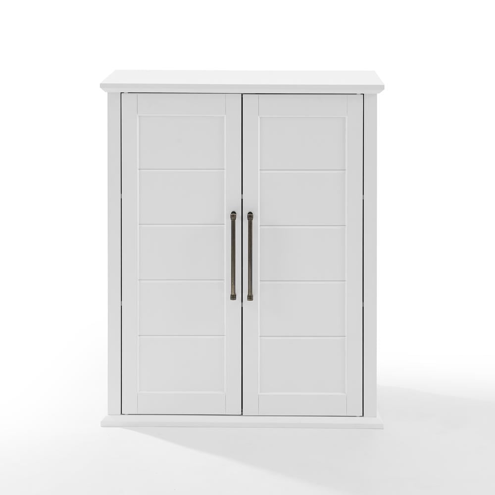Material: MDF wood 70%, birch veneer 30% Finish: White, black Modern farmhouse design Oversized genuine metal hardware in a gunmetal finish Recessed shiplap paneling Cabinet doors have magnetic closures Two adjustable and removable shelves Adjustable shelves Includes metal plate for stacking two units together Second unit for stacking is sold separately Pairs well with traditional and coastal decor Can be used as a linen cabinet, coffee bar cabinet, or laundry room storage Anti-tip hardware: Yes Indoor furniture
