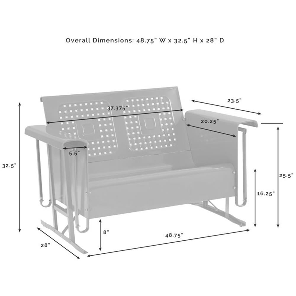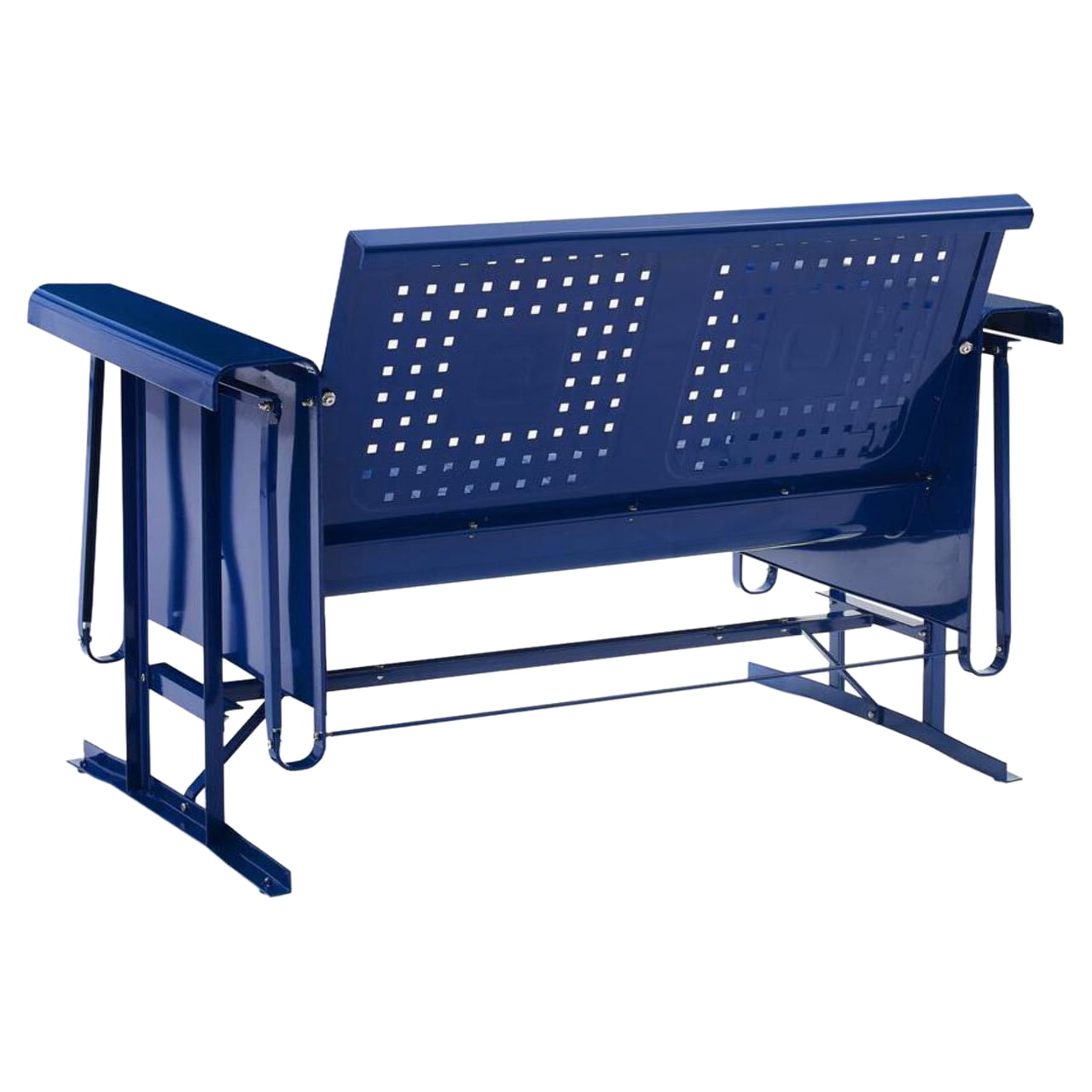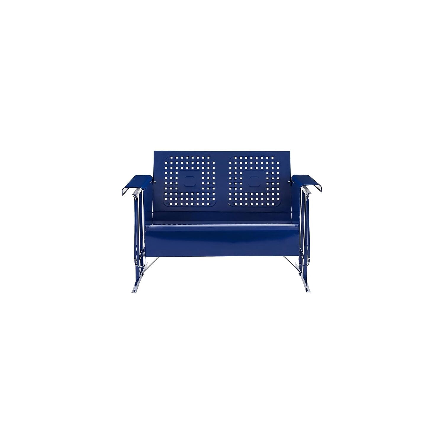 Glide back into lazy summer afternoons with the Bates Outdoor Loveseat Glider. This vintage-style loveseat comes in a variety of vibrant colors, offering a fun outdoor lounging experience. The back features a unique basket weave design that allows air to circulate, and the base has a smooth gliding mechanism for relaxing in comfort. Made of durable steel, this glider has a powder-coated finish that resists rust and sun fade. The Bates Loveseat Glider is sure to add a dash of retro fun to your porch or patio. Features: Material: Steel metal 100% Finish: Navy gloss Retro design Sturdy steel construction Weather-resistant powder-coated finish UV and rust resistant Navy gloss finish Back and seat have a basket weave design with holes for air circulation Smooth glide rocking mechanism Ideal for small outdoor spaces Seating for up to two Can be used as outdoor patio furniture, balcony furniture, or porch furniture Anti-tip hardware: No Outdoor furniture Specifications: Product Dimensions: 32.5″H x 48.75″W x 28″D Product Weight: 60.5 lbs Seat Dimensions: 16.25″ H x 20.25″ D Product Weight: 60.5 lbs Arm Height: 25.5 Product Dimensions: (Floor Clearance) 8″