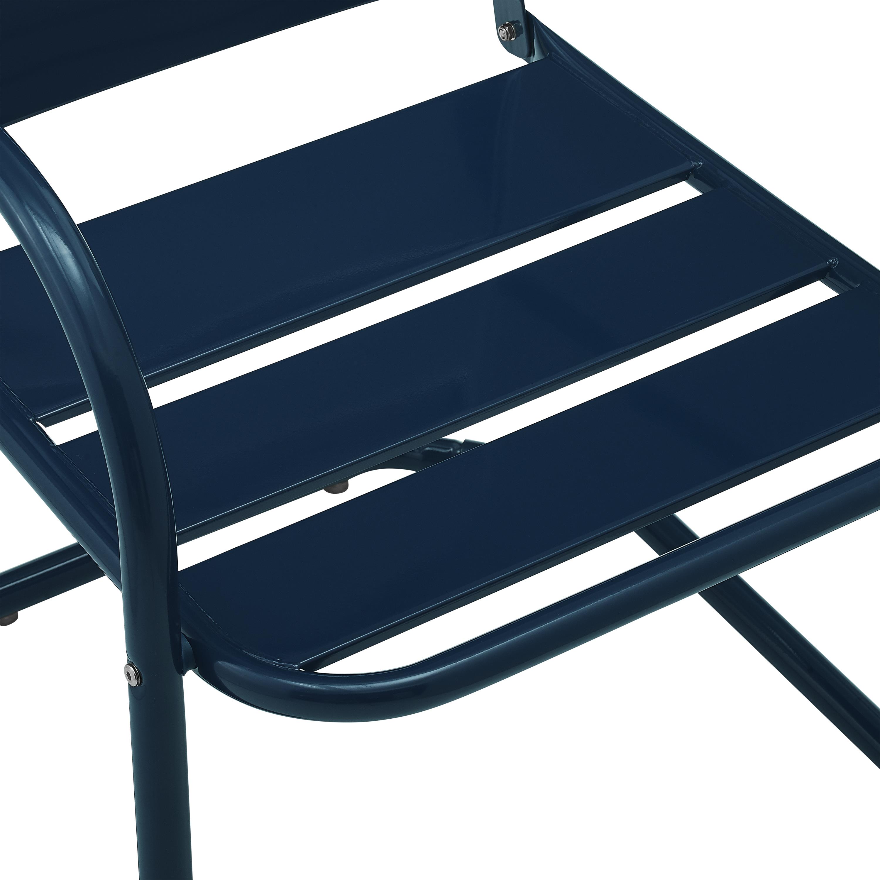 Crosley Furniture Brighton Retro Metal Armchair, Navy (Set of 2) Includes a set of 2 arm chairs for versatile seating options Sturdy steel construction ensures durability and longevity Easy to assemble for quick setup Non-toxic powder-coated finish for a sleek look Available in several colors to match your decor