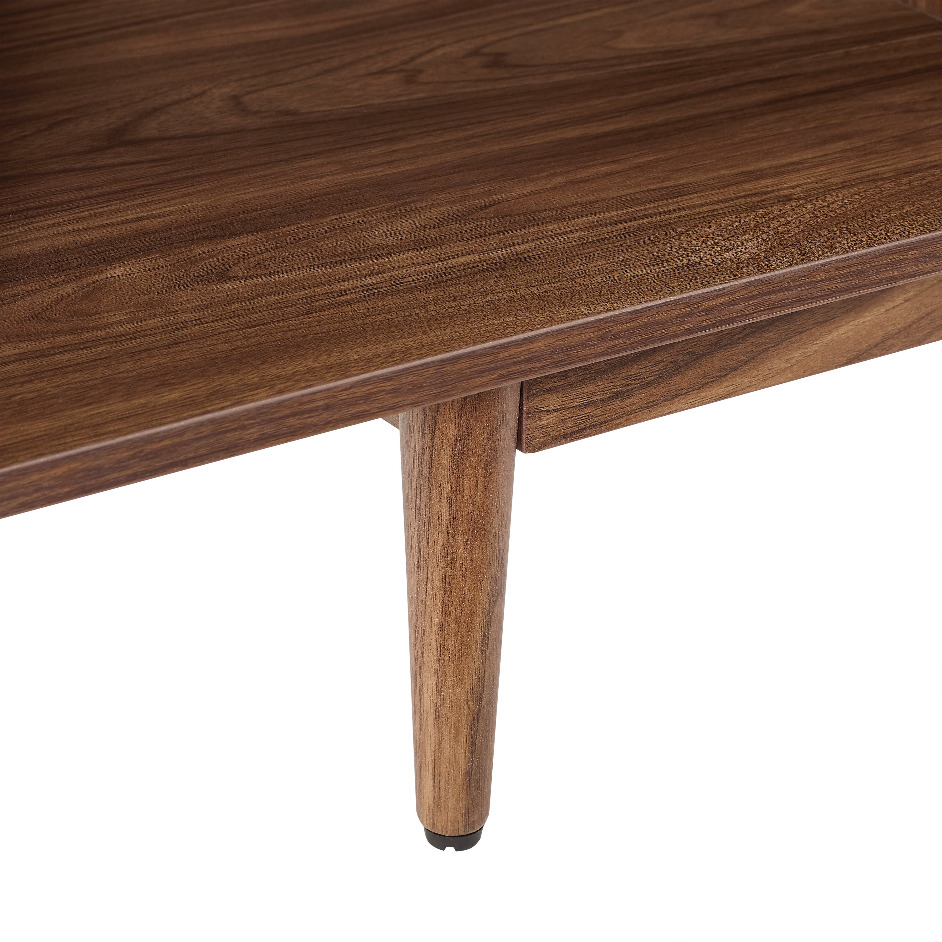 Material: Particle board 75%, paper veneer 10%, PVC 5%, poplar wood 5%, MDF 5% Finish: Walnut Mid-century modern media furniture Adjustable levelers in legs Low-profile silhouette The record holder has two sections sized to fit full-size 12-inch records Each section of the console has a weight limit of 45lbs and vinyl record storage for up to 120 single albums Can be used as a sofa table, bookshelf, display case, or TV stand for wall-mounted TVs up to 43″ Anti-tip hardware: No Indoor furniture Tapered legs Pairs well with industrial, rustic and modern decor