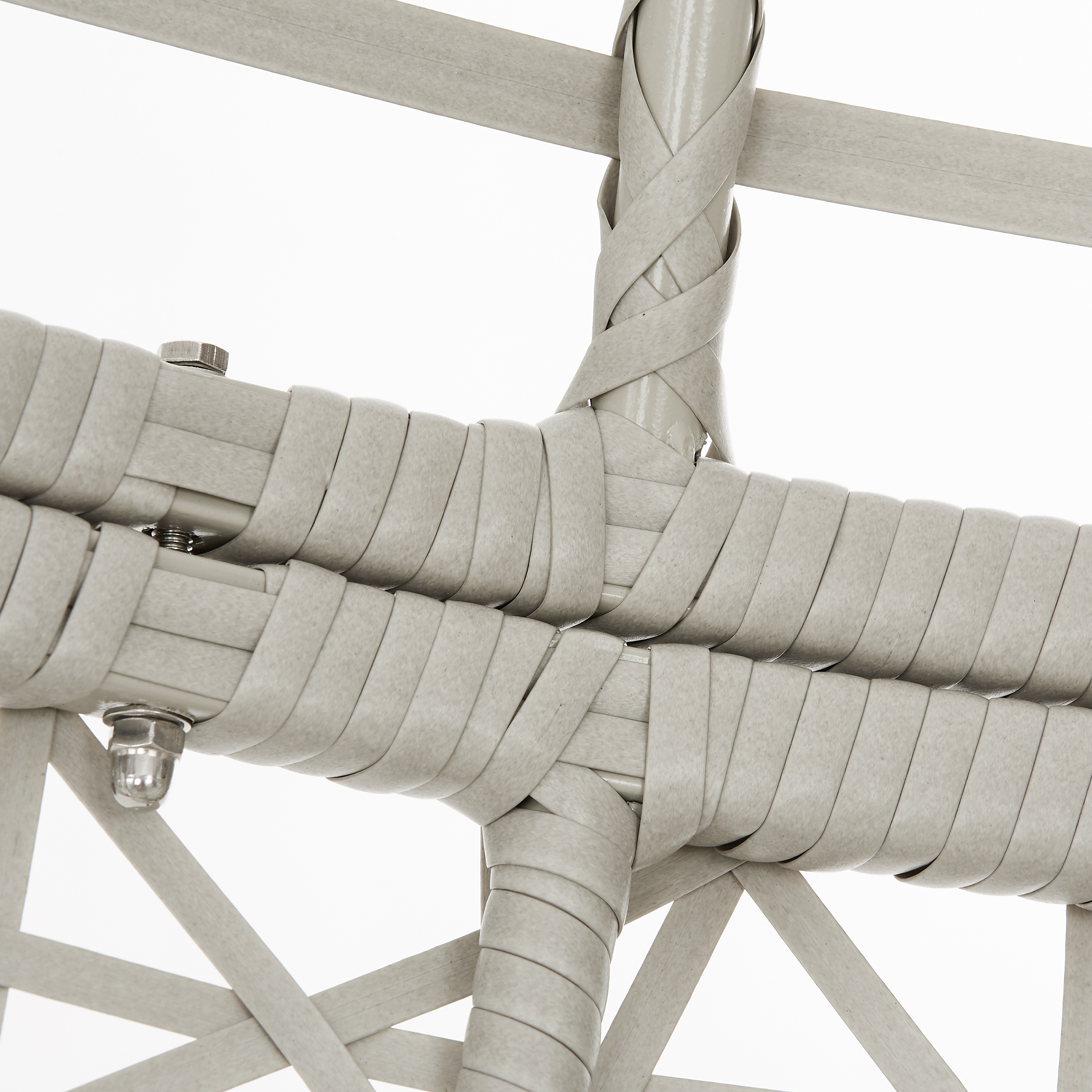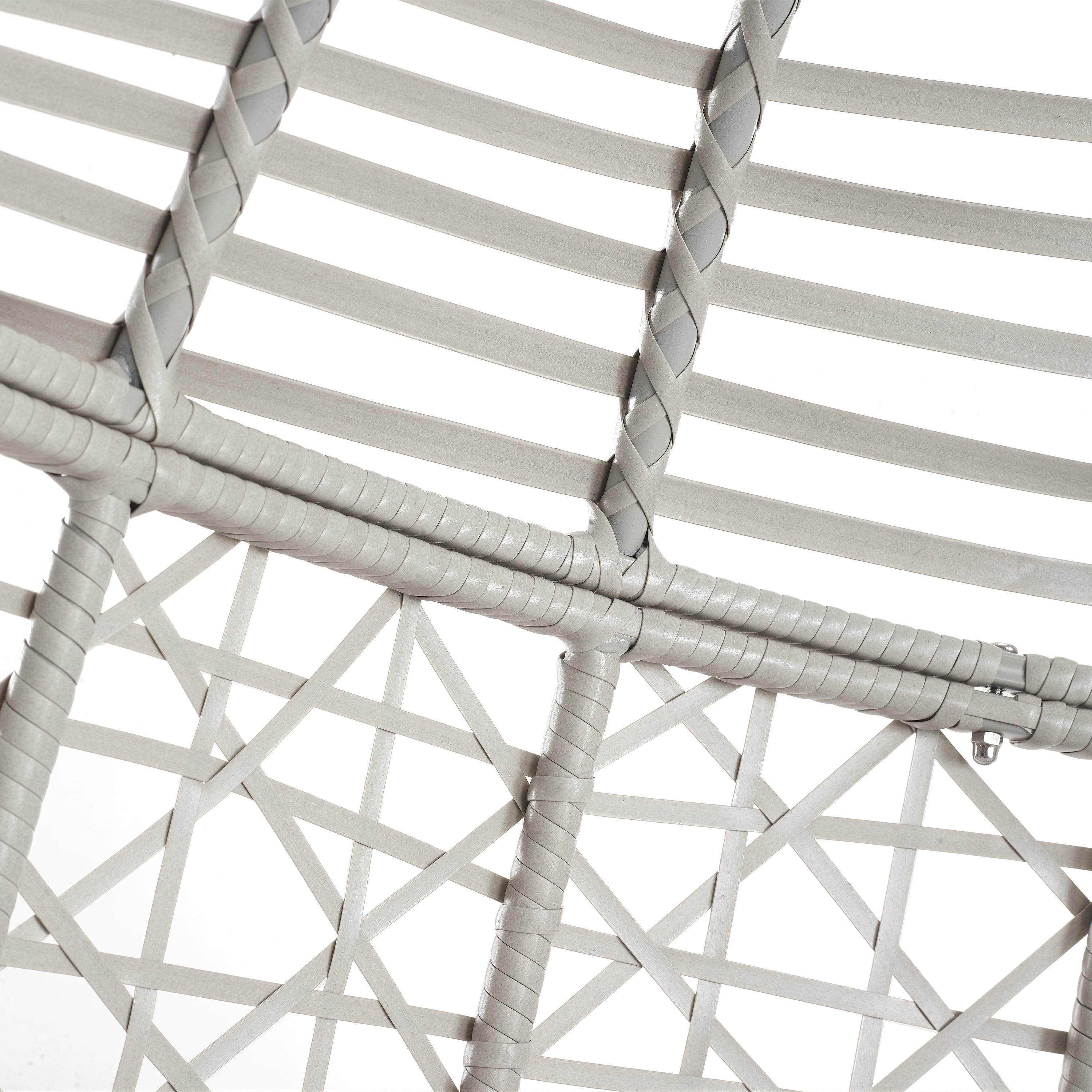 Bohemian design Durable powder-coated steel chair frame and stand Light gray all-weather resin wicker Tufted cushion covered in a sand-colored polyester fabric Designed for indoor or outdoor use Chair has a weight limit of 250 lbs