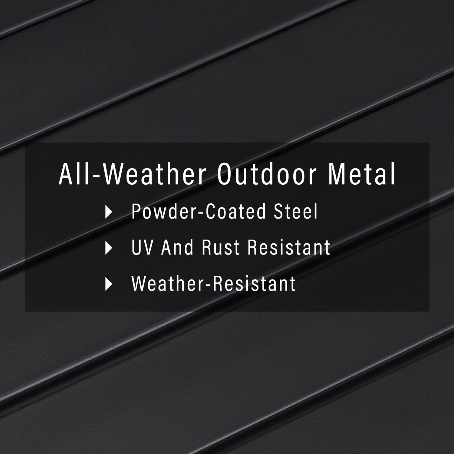 Modern design Weather-resistant powder-coated steel frame Matte black finish UV and rust resistant Classic slat top design Low-profile silhouette Modular design pairs with other items in this collection Table weight limit is 25lbs
