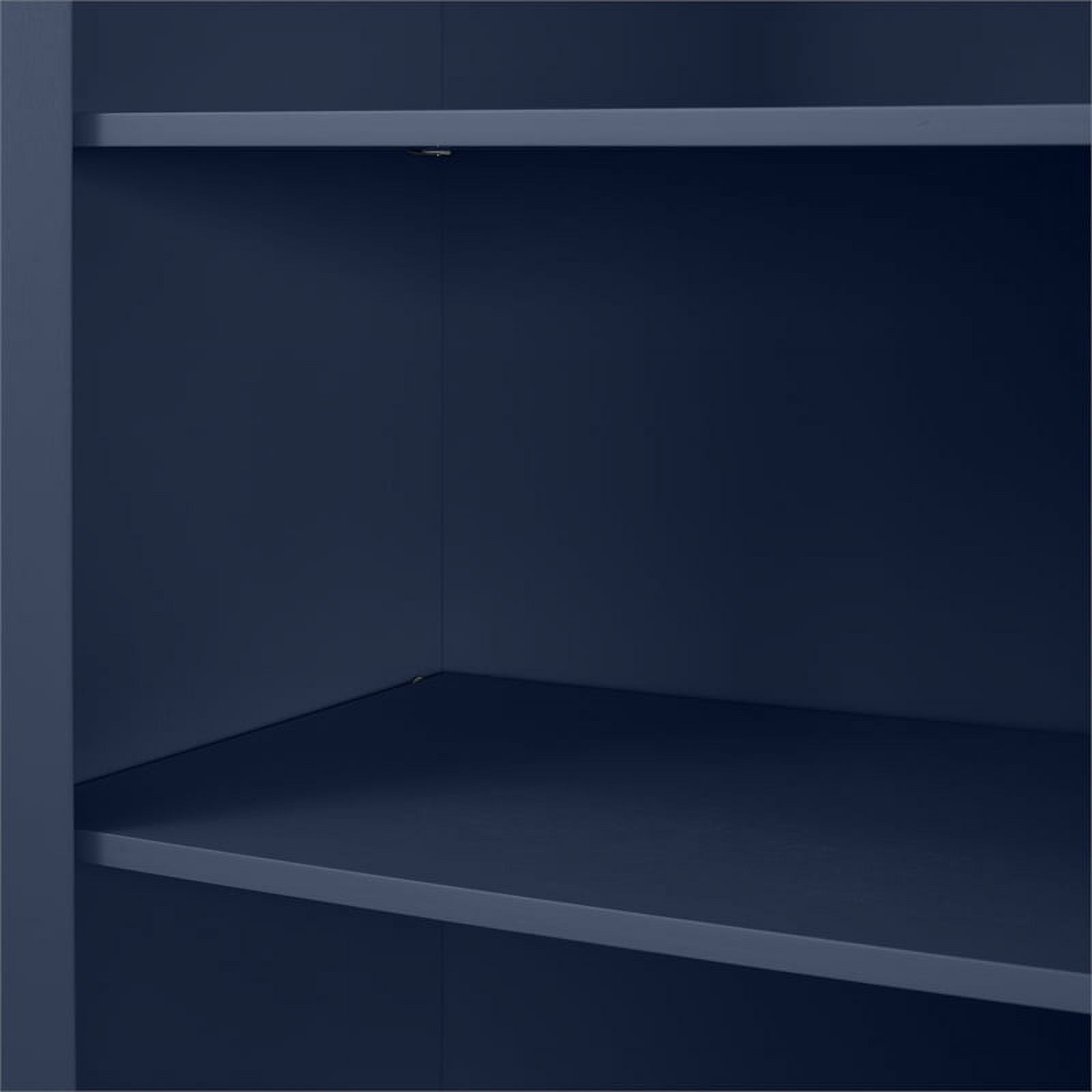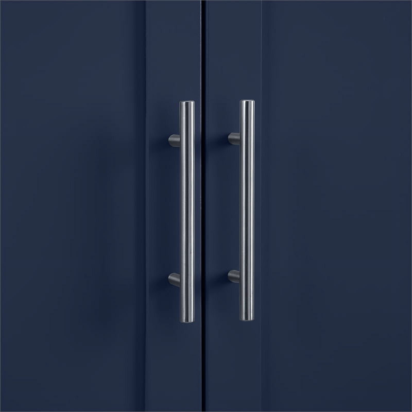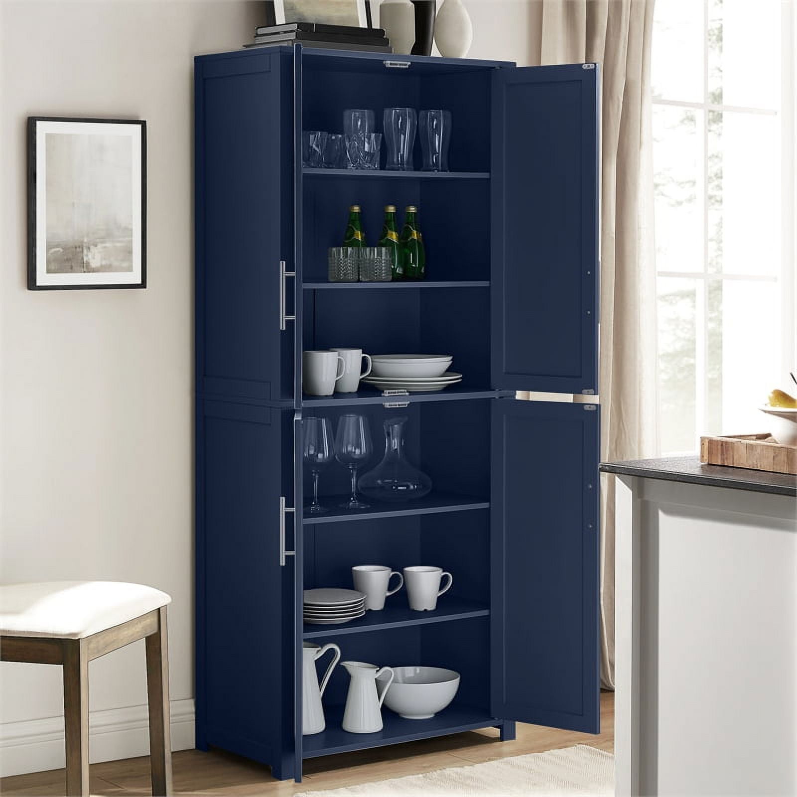 Material: MDF wood 80%, birch veneer 20% Finish: Navy Genuine metal hardware in a brushed nickel finish Traditional kitchen organization and storage Each storage cabinet has two adjustable shelves with a 15lb weight limit per shelf Pantry cabinet doors have magnetic closures Shaker-style recessed panels on kitchen cabinet doors Can be used as a linen cabinet, coffee bar cabinet, or laundry room storage Modular design allows multiple units to be paired together for expanded organization and storage Pairs well with modern, minimalist, traditional, and farmhouse decor Anti-tip hardware: Yes Indoor furniture