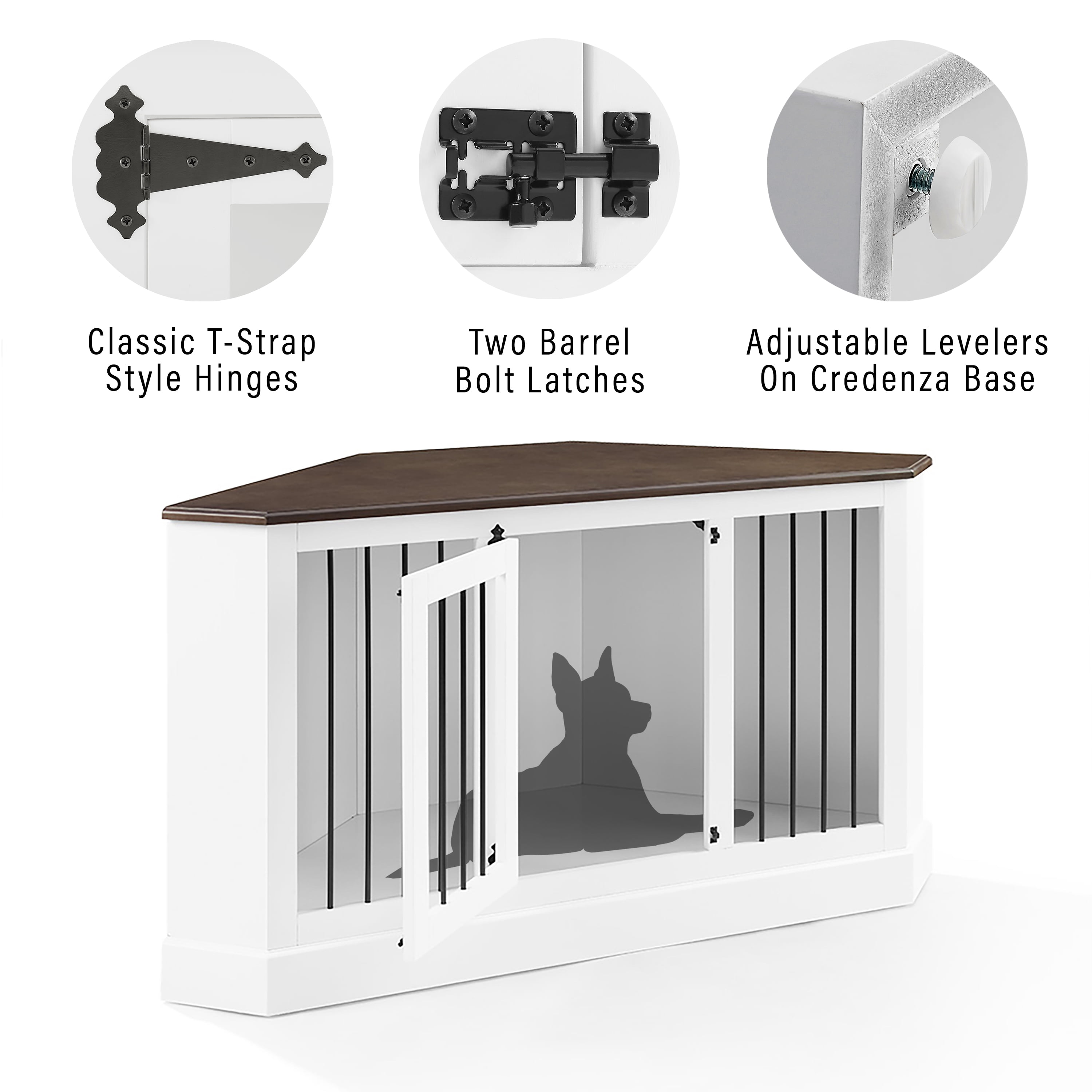 Crosley Furniture Winslow Corner Dog Crate Credenza Kennel for Pets