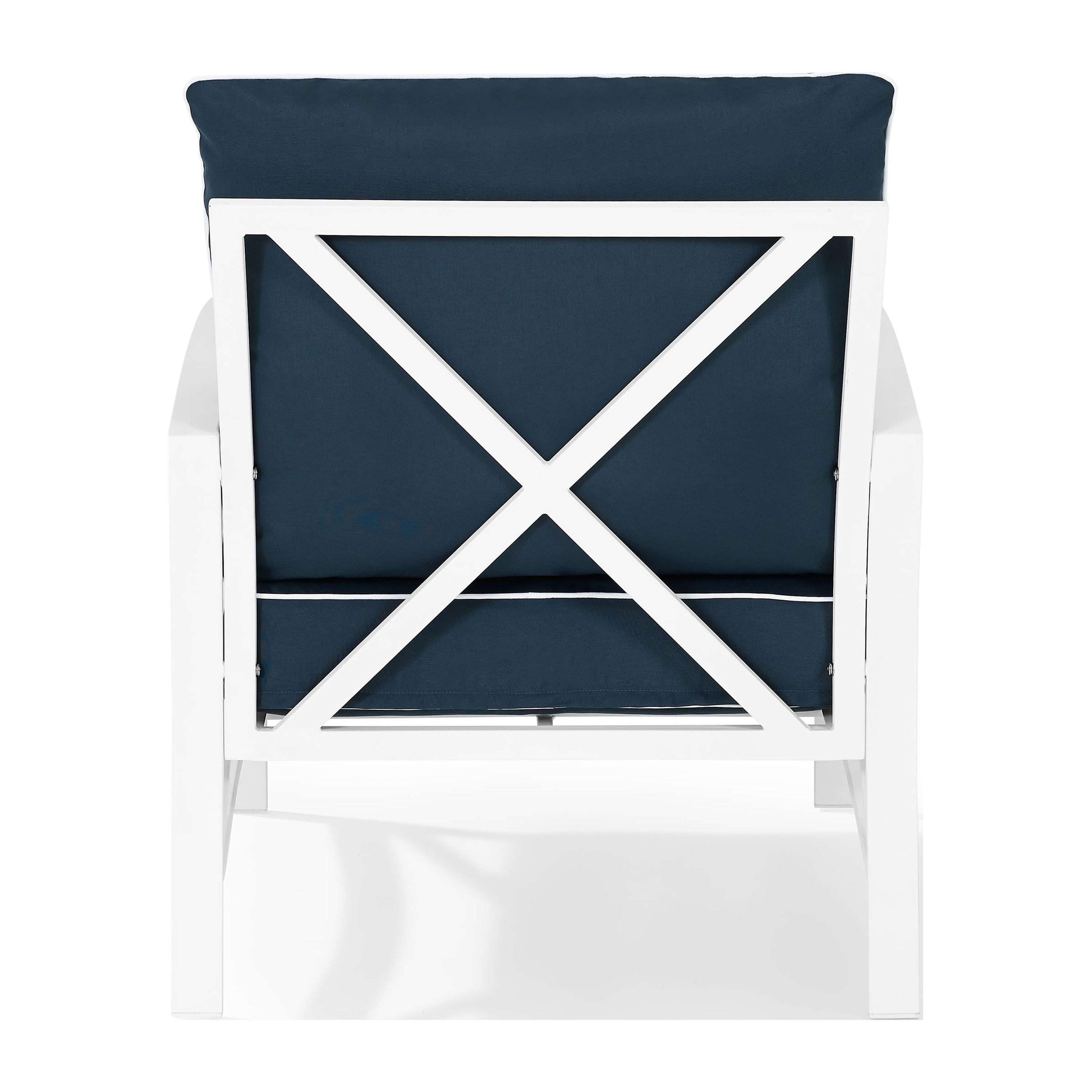 Sturdy Steel Frame in White Finish; All-weather, Rust Protected Premium Steel; Simple X Design; UV/Fade Resistant Cushions; Moisture Resistant Cushions; Easy To Assemble