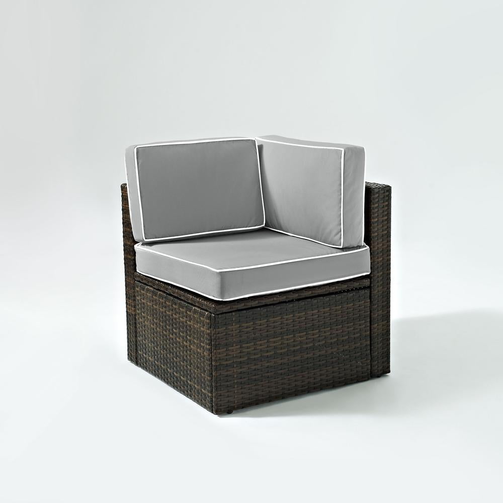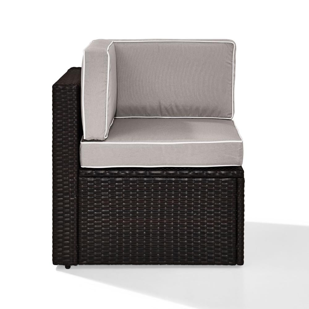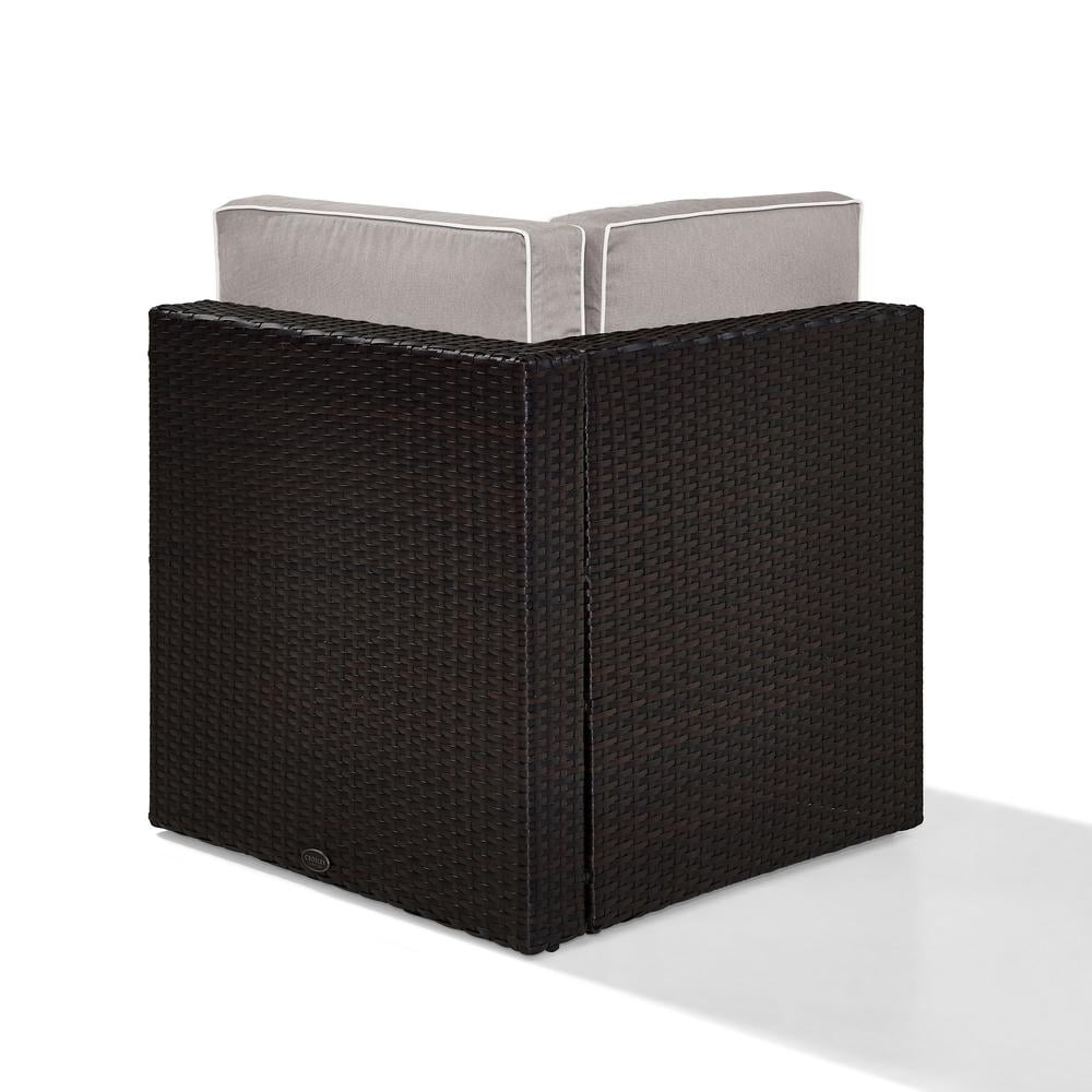 Finish: Brown and Gray Material: Fabric 50%, Foam 10%, PE Wicker 15%, Steel 25% UV-resistant outdoor resin wicker Durable steel frame UV/ fade-resistant cushions Moisture-resistant cushions High-grade cushion cores Modular design allows for a variety of seating configurations Easy to assemble