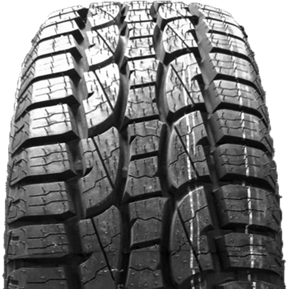 All-terrain tread Black sidewall 50,000-mile limited manufacturer tread life warranty All-terrain tread Black sidewall 50,000-mile limited manufacturer tread life warranty Biting open shoulder tread design encourages water expulsion and self-cleaning Optimized design provides a comfortable, quality ride on paved roads Built with an aggressive tread pattern and large lugs that enhance traction on- and off-road Designed for use on Jeeps, SUVs, and pickup trucks Backed by a 50,000 mile limited manufacturer tread life Biting open shoulder tread design encourages water expulsion and self-cleaning Optimized design provides a comfortable, quality ride on paved roads Built with an aggressive tread pattern and large lugs that enhance traction on- and off-road Designed for use on Jeeps, SUVs, and pickup trucks Backed by a 50,000 mile limited manufacturer tread life