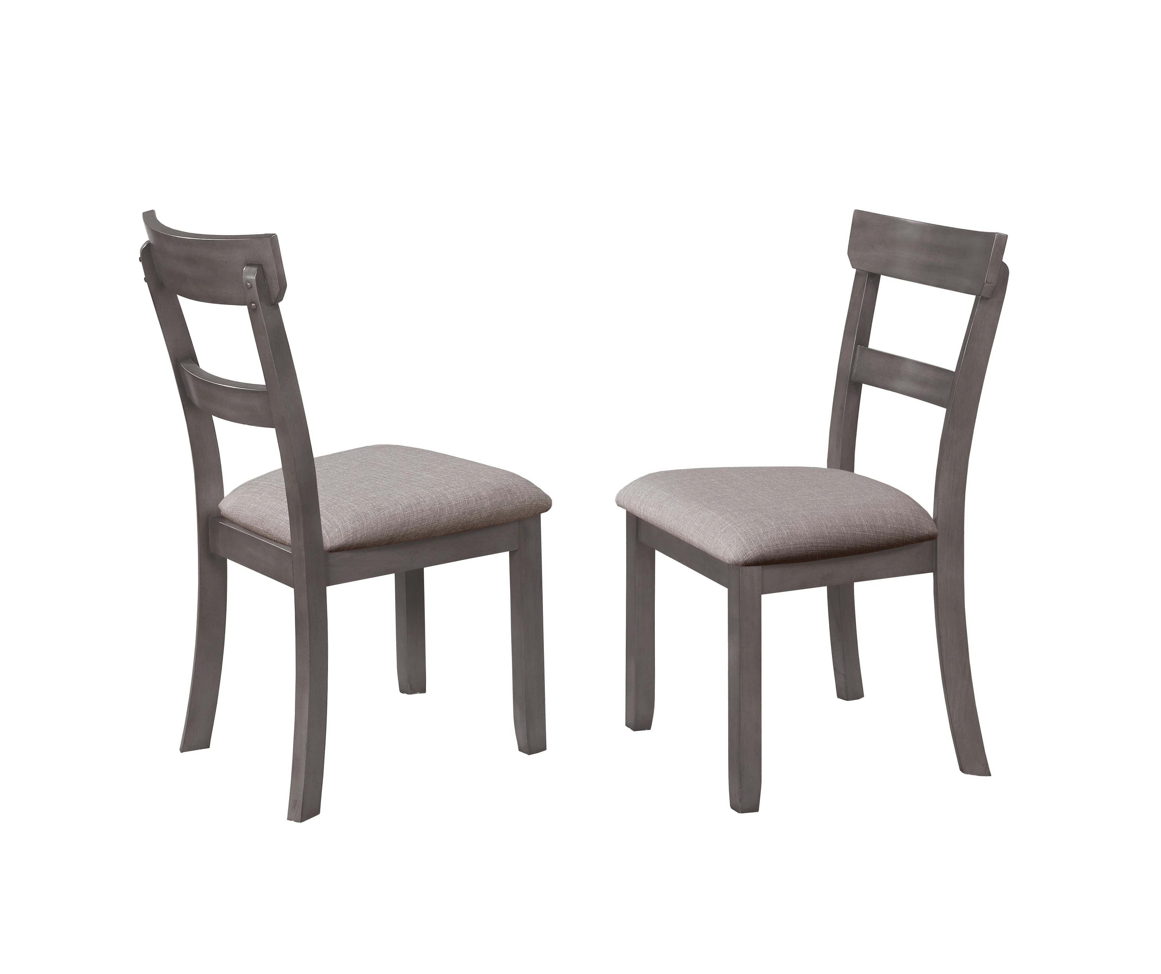 The Crown Mark Gray Henderson dining group is offered in a modern gray finish. This transitional group is sure to compliment your decor. The chairs have a rounded panel back design with padded gray linen seats for added comfort. Simple elegance make this set effortless. Set includes table and 4 chairs, customer assembly required.