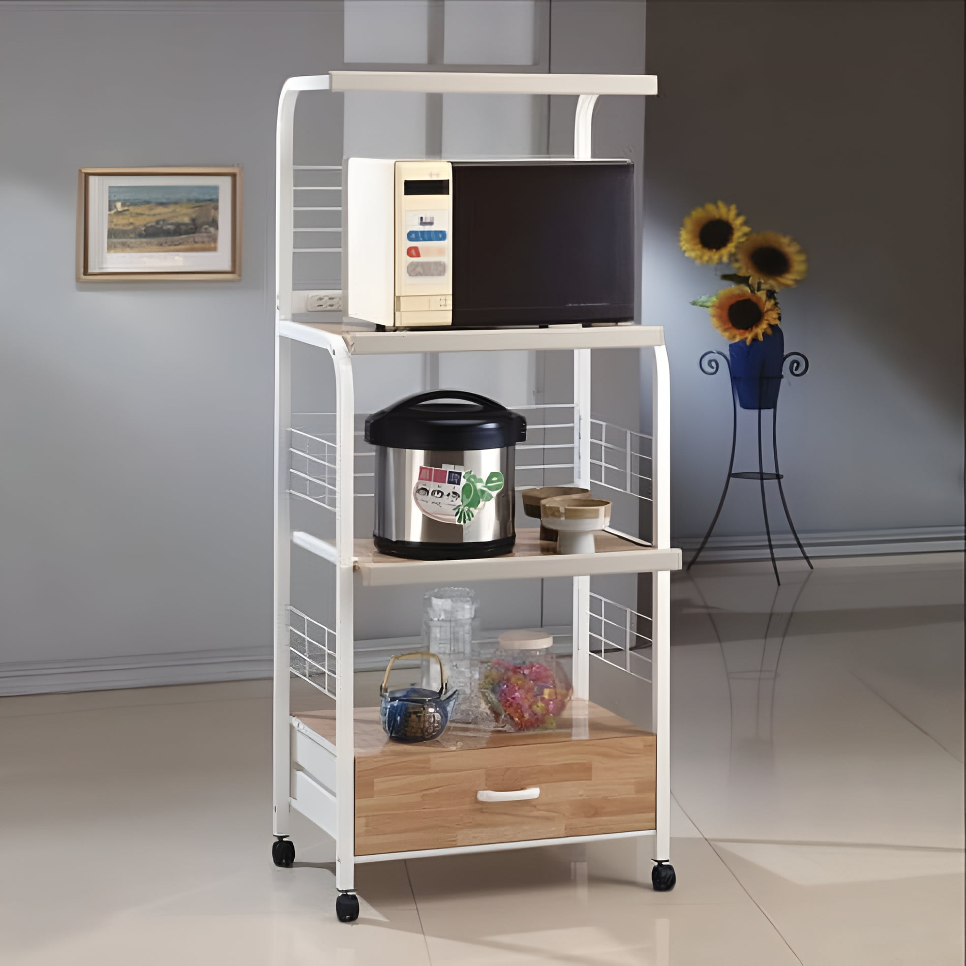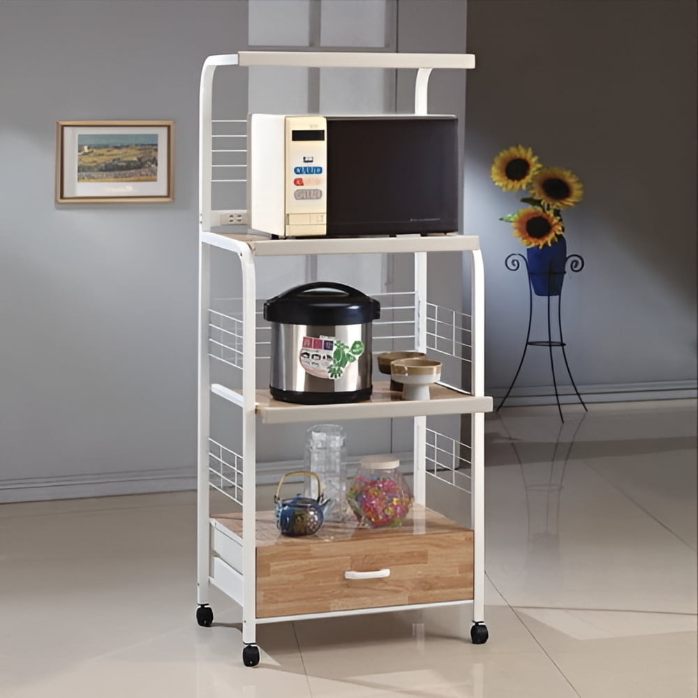 Crown Mark Microwave Kitchen Cart with Casters, White