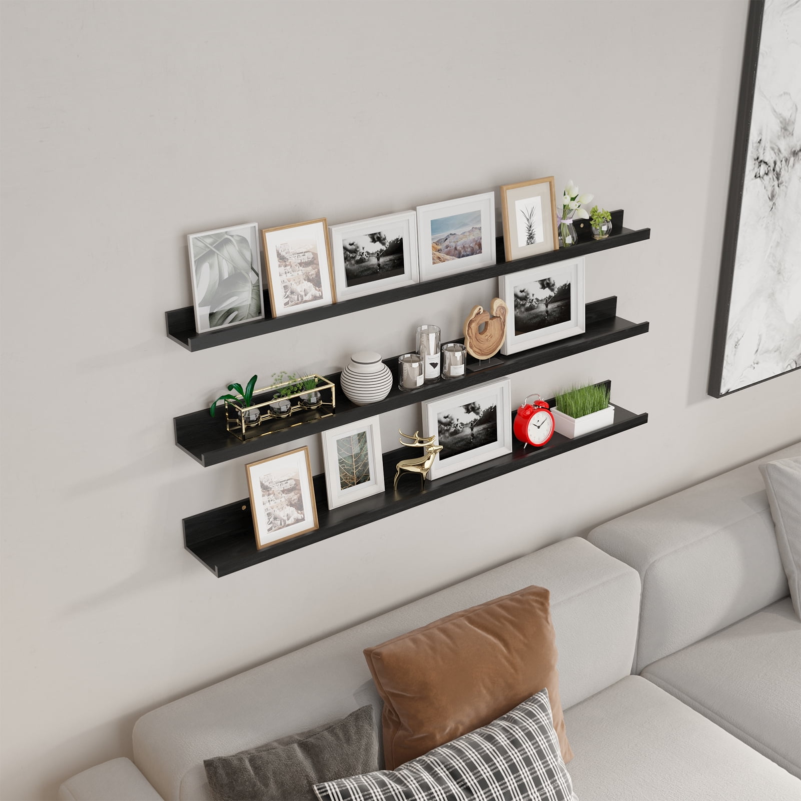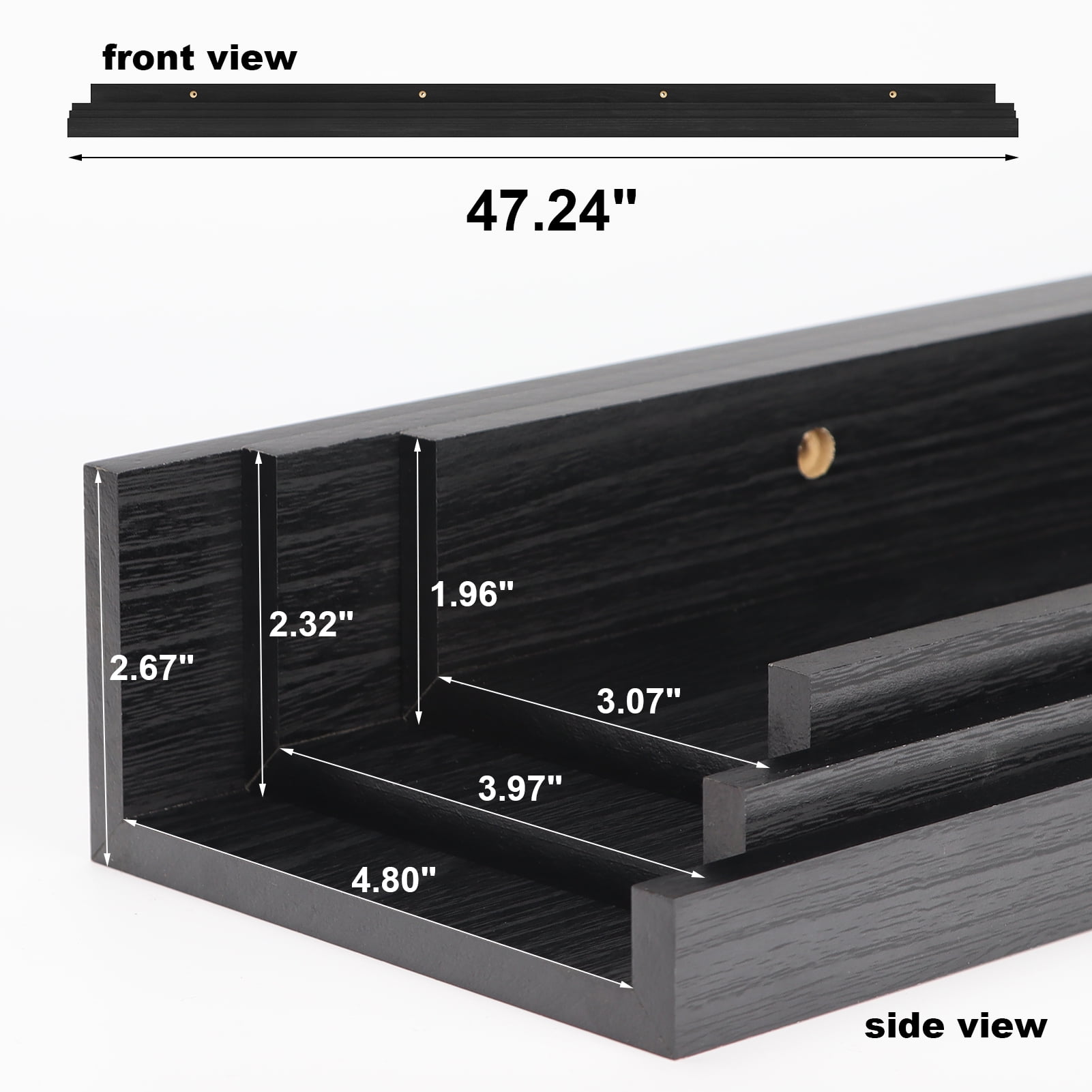 CRUGLA 47 Inch Floating Wall Ledge Shelves Set of 3, Long Picture Rail Large Photo Shelving for Living Room Bedroom Office, Different Sizes, Black