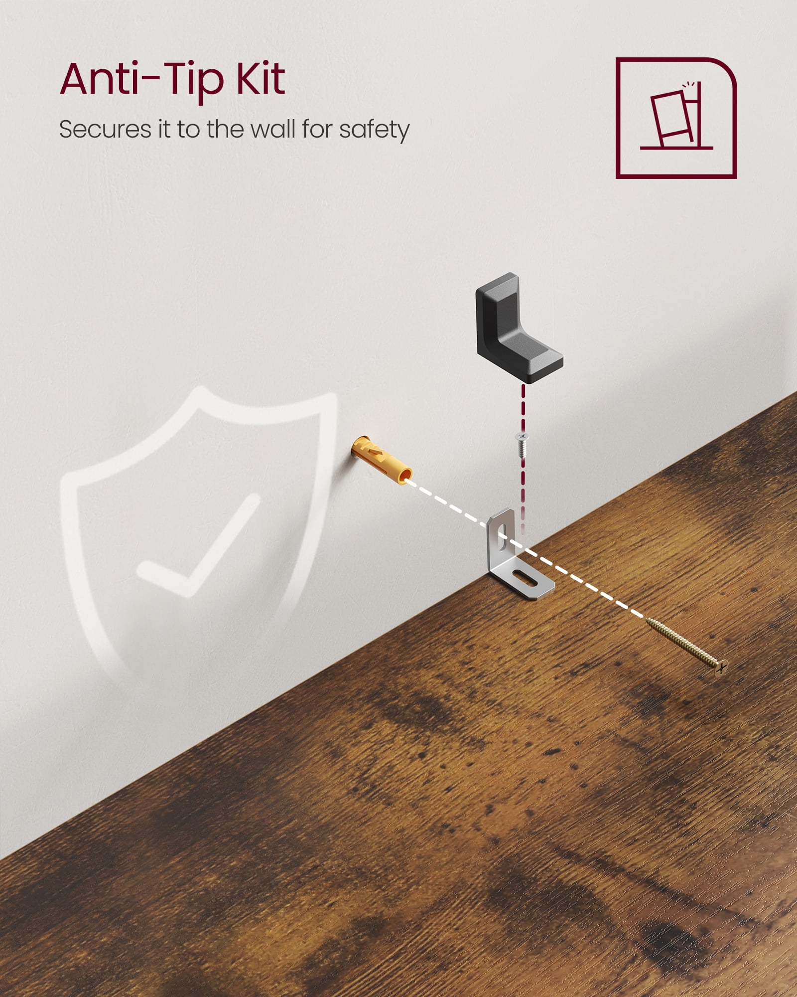 TO-READ-LIST: Got a list of books you wish you had time for? Stop piling them in a deep box to be forgotten, and put them on this 4-tier bookshelf and grab them with ease, with no time getting wasted. The rustic brown tone will sure catch your eyes STRENGTH FOR EACH LEVEL: The key reason to opt for this bookcase is its solid construction—built with durable particleboard, each shelf can hold 22 lb to keep your books in safe hands ADJUSTABLE, FLEXIBLE: Your books aren’t one-size-fits-all, so why should your bookshelf be? Adjust the 1st and 3rd shelves among 3 height positions each to fit short or tall books, so you can keep your favorite ones on, from classics to detective NO DISTRACTION: Once diving into a good book, it’s hard to put it down for longer than a day. Assembling this unit won’t take so long—with clear instructions and labeled parts, you’ll set it up in no time to pore over the pages for hours on end WHAT YOU GET: A 4-tier bookcase standing at 23.6”L x 9.4”W x 42.3”H, with a chic rustic design and clean lines that’ll cut a fine figure in your reading nook, and an anti-tip kit to keep it stable after loaded with your book collection Color: Rustic Brown Material: Particleboard Product Size: 9.4”D x 23.6”W x 42.3”H (24 x 60 x 107.5 cm) Product Weight: 31 lb (14.1 kg) Max. Static Load Capacity per Shelf: 22 lb (10 kg) Max. Static Load Capacity Total: 88 lb (40 kg) 1 x Bookcase 1 x Accessory Kit 1 x Anti-Tip Kit 1 x Instructions For safety reasons, children are not allowed to climb on or play with the bookshelf. Please attach the bookcase to the wall with the included anti-tip kit for safety. For daily maintenance, wipe with a damp cloth.
