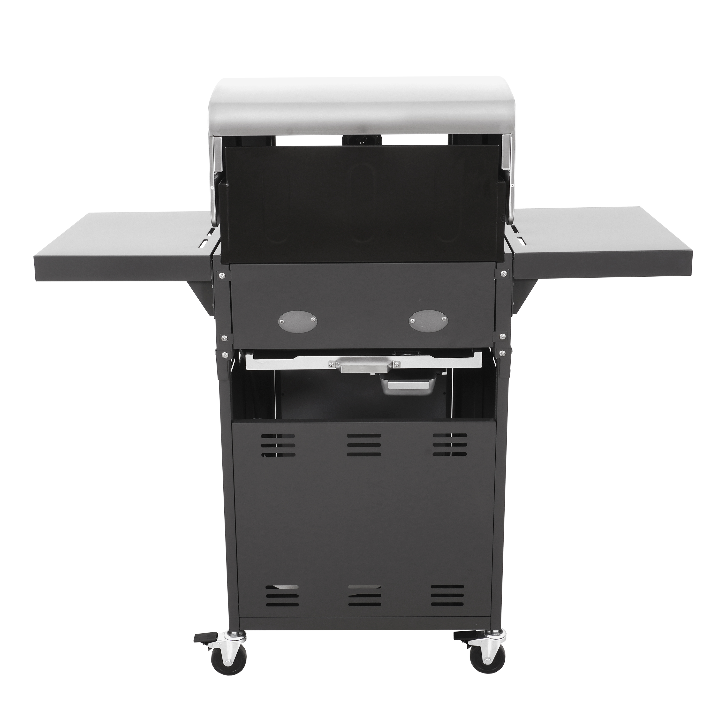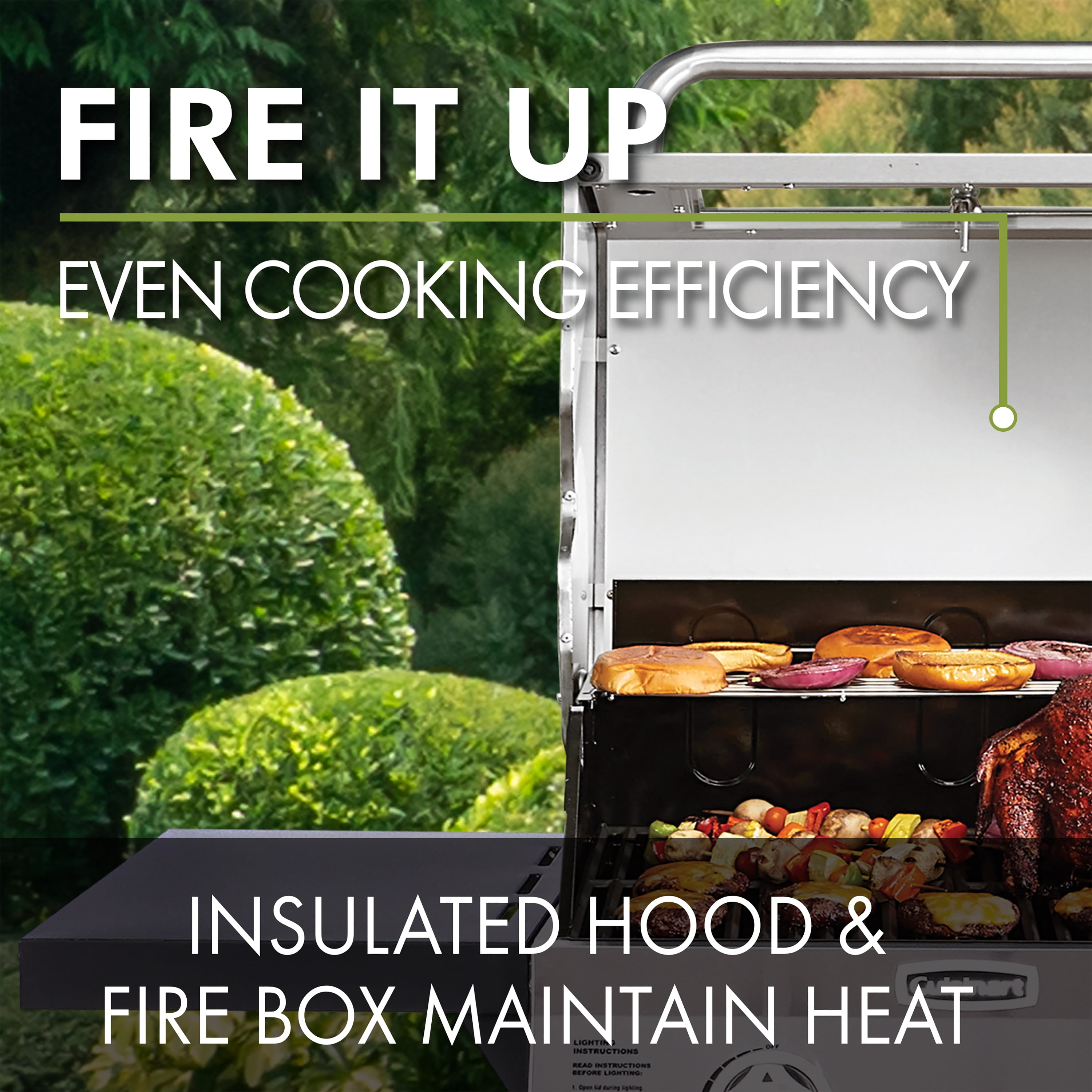 503 square inches of total cooking area on heavy-duty cast iron cooking grates. High-end porcelain-coated, cast-iron grates are durable, rust-resistant, and easy-to-clean. Double wall insulated lid and firebox to retain heat for ultimate cooking experience. Complete with an appliance style viewing grade window to monitor your food without losing heat. Features two ceramic coated stainless-steel burners. Independent Ignition on each burner. Folding side shelves make it easy to store or position the grill, creating a convenient cook and prep space. Maneuver your grill through the backyard or lock in place with four heavy-duty locking casters. Built ready to use with propane but can easily be converted to natural gas (conversion kit sold separately). Warranty: 15-year stainless steel burners, 3 year all other stainless-steel parts and 1 year all other parts. Can fit up to twenty-three burgers 32,000 Total BTU’s Model Number: GAS2256AS