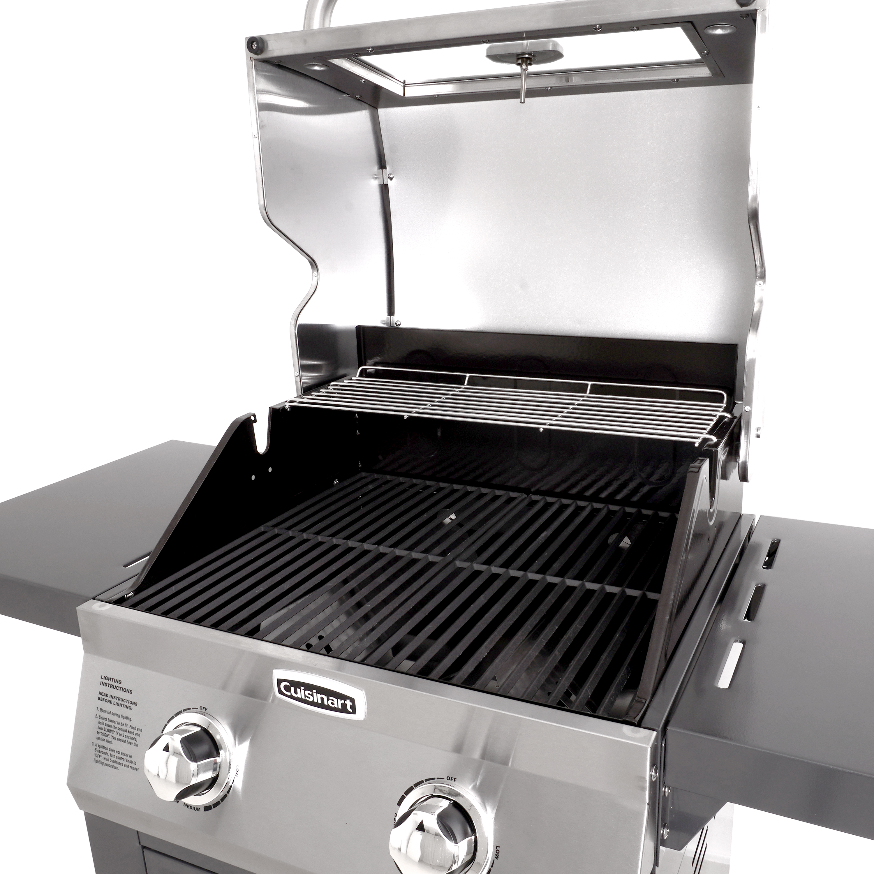 Experience the appliance grade performance in your own backyard with the Cuisinart Two Burner Dual Fuel Gas Grill in Stainless Steel. Featuring 503 square inches of total cooking space, this grill can fit up to twenty-three burgers. Featuring an appliance grade glass viewing window in the double wall insulated lid, easily monitor your food without losing heat. Convert the grill from propane to natural gas with the dual fuel valves (Model#ACC1056AF Cuisinart Natural Gas Conversion Kit sold separately).